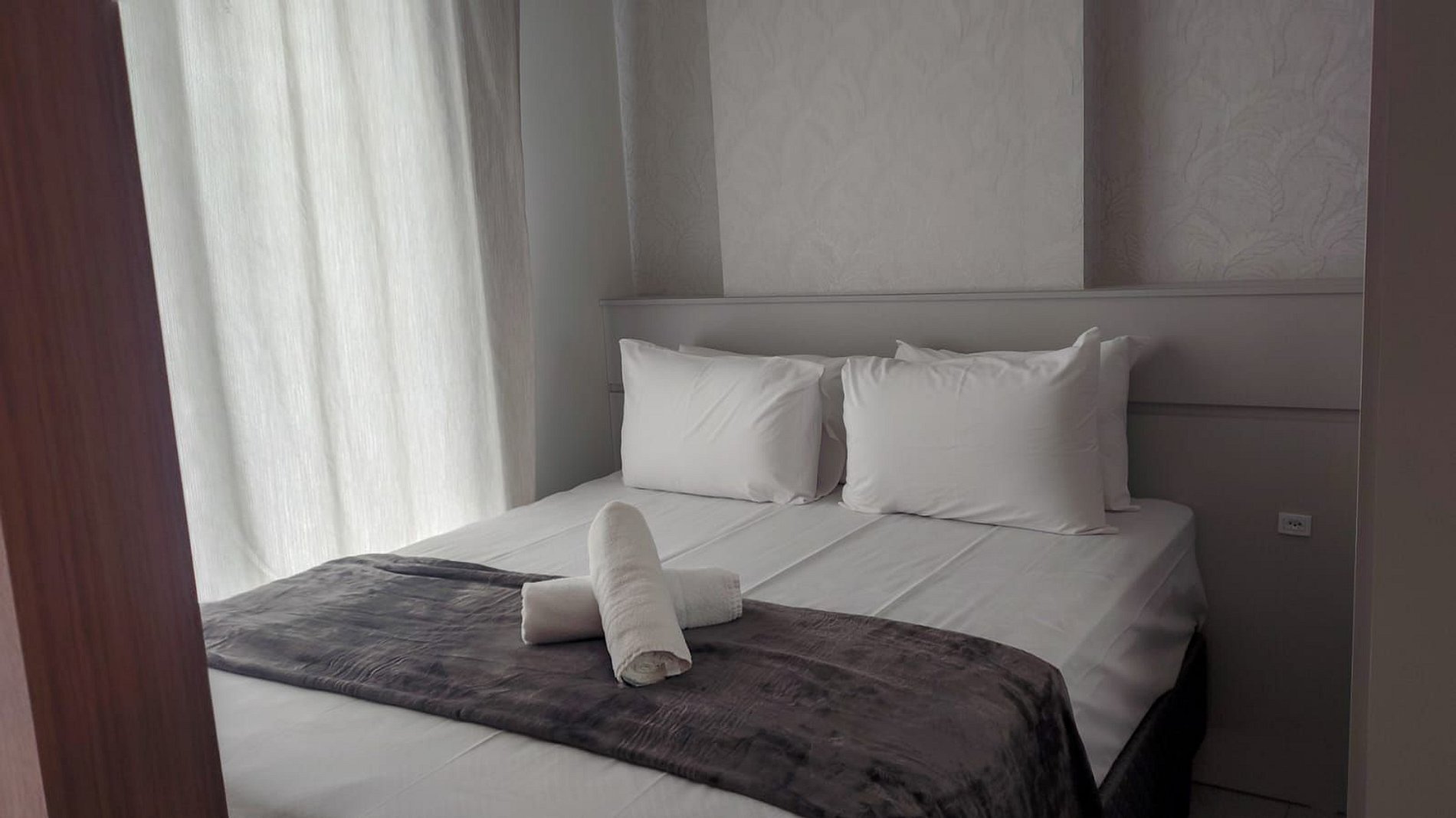 - Cama doble, sofá, Smart TV, armario y aire acondicionado;