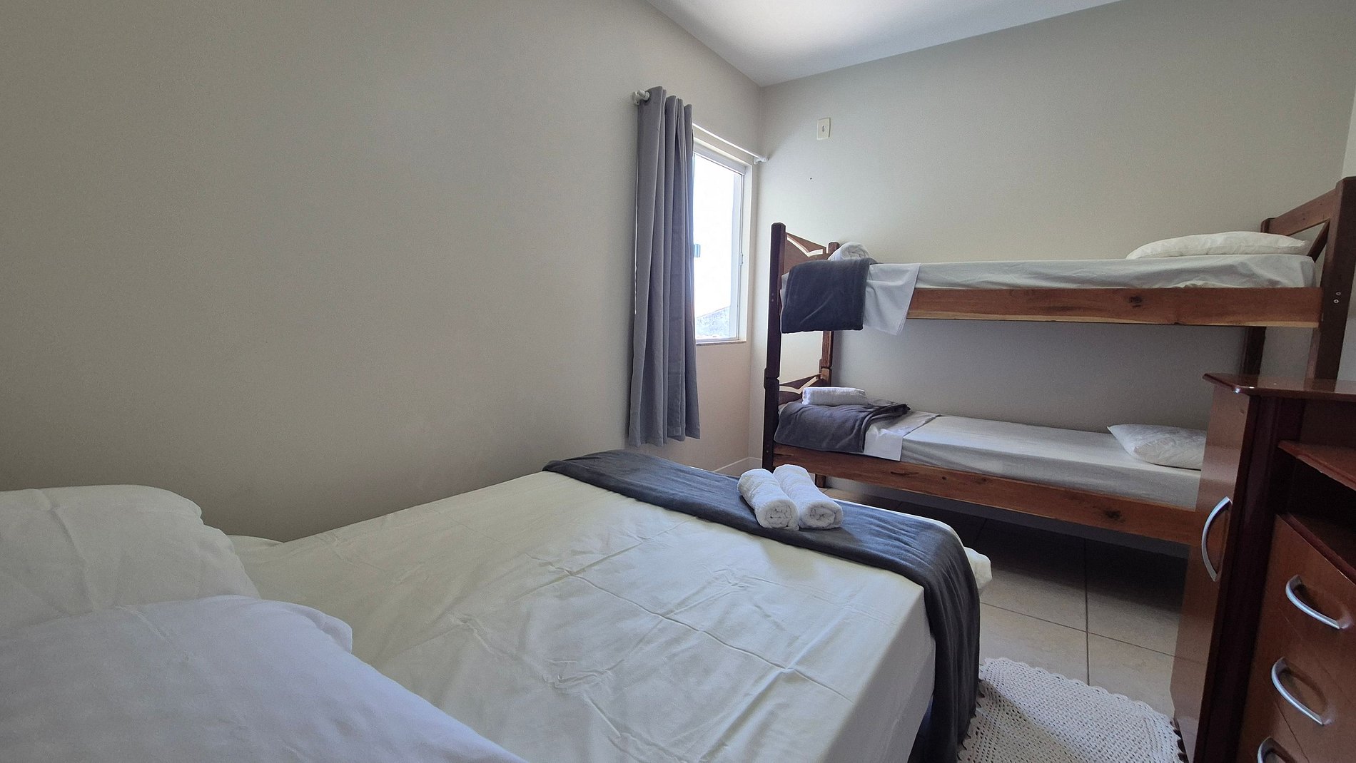 - 1 Dormitorio con cama doble y 1 litera individual, armario y ventilador de techo;