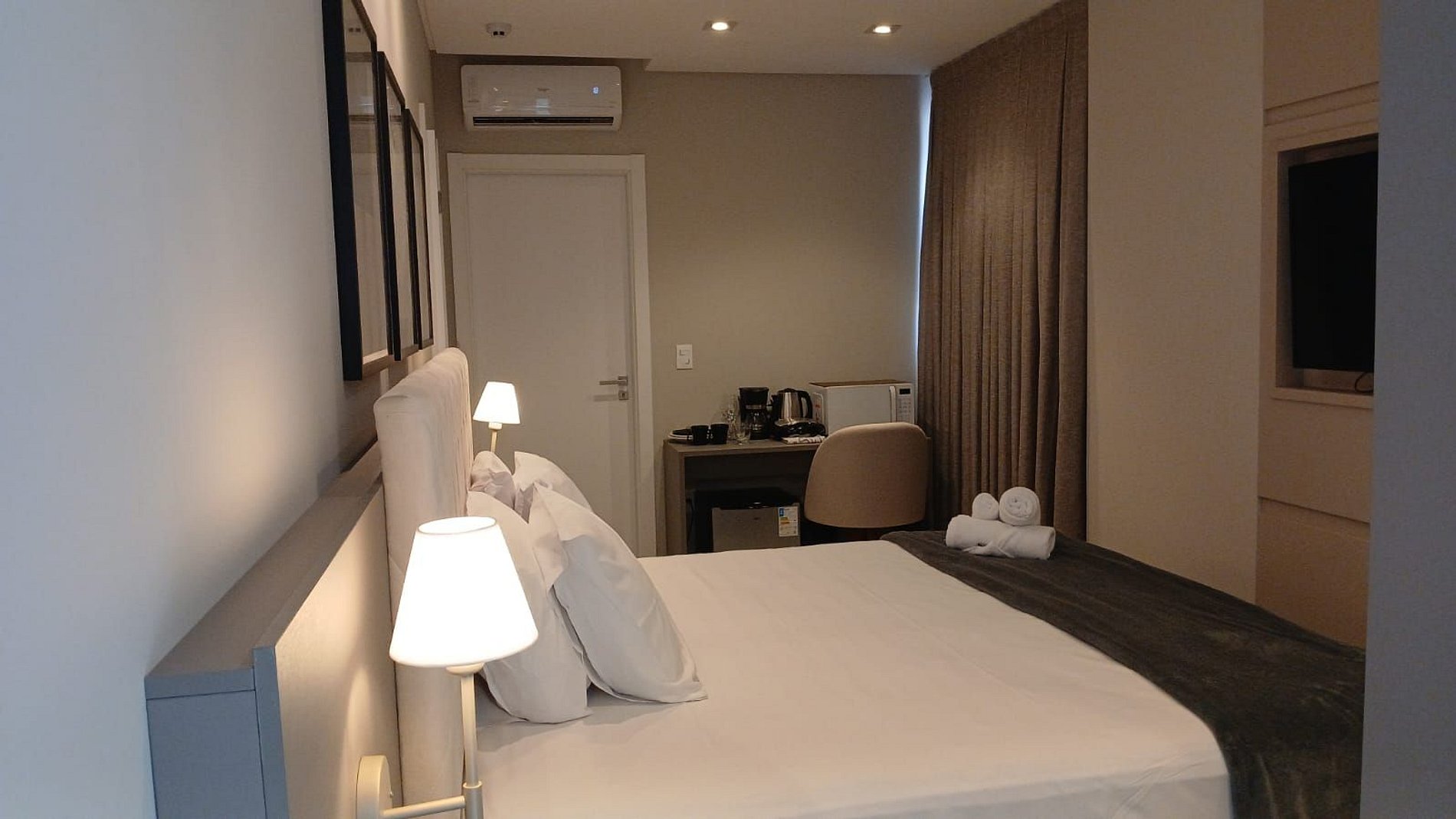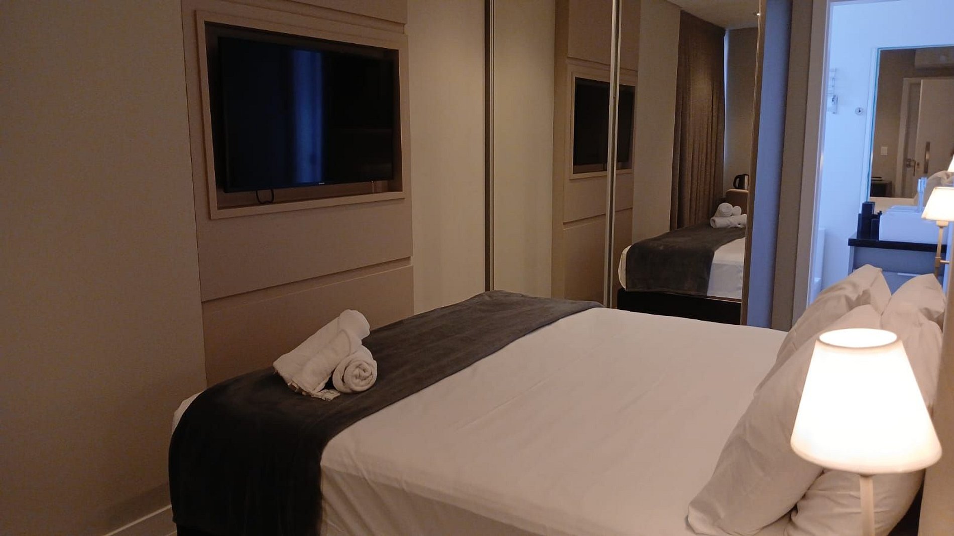- 1 cama king size, cortinas blackout, armario, Smart TV y aire acondicionado;