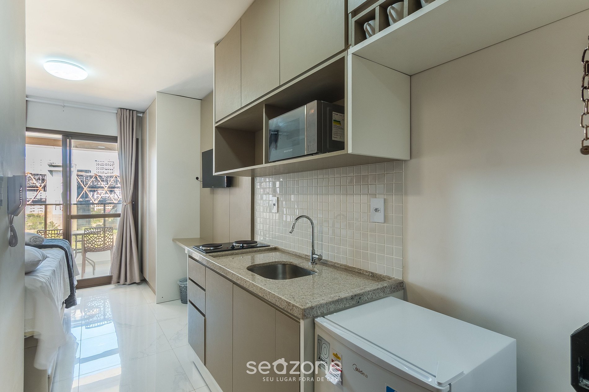Con un diseño inteligente, este studio ofrece cama matrimonial, cama auxiliar, Smart TV, aire acondicionado, cocina equipada y balcón con vista a la ciudad. Ubicación estratégica en Jardim Armação, a pocos minutos del paseo marítimo, mercados, restaurantes y del Salvador Shopping. El condominio cuenta con piscina en la azotea, gimnasio y coworking.