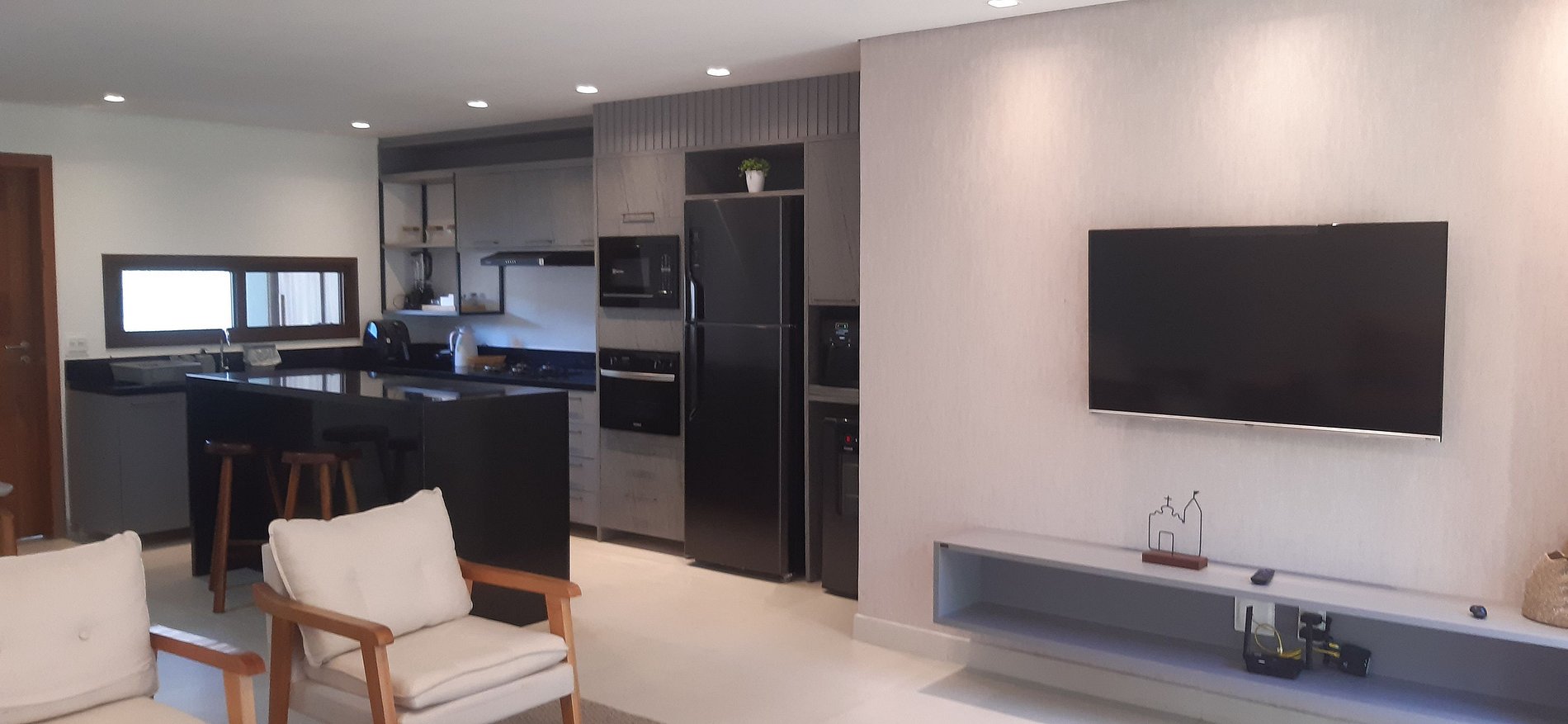- Sala de estar con sofá y Smart TV;