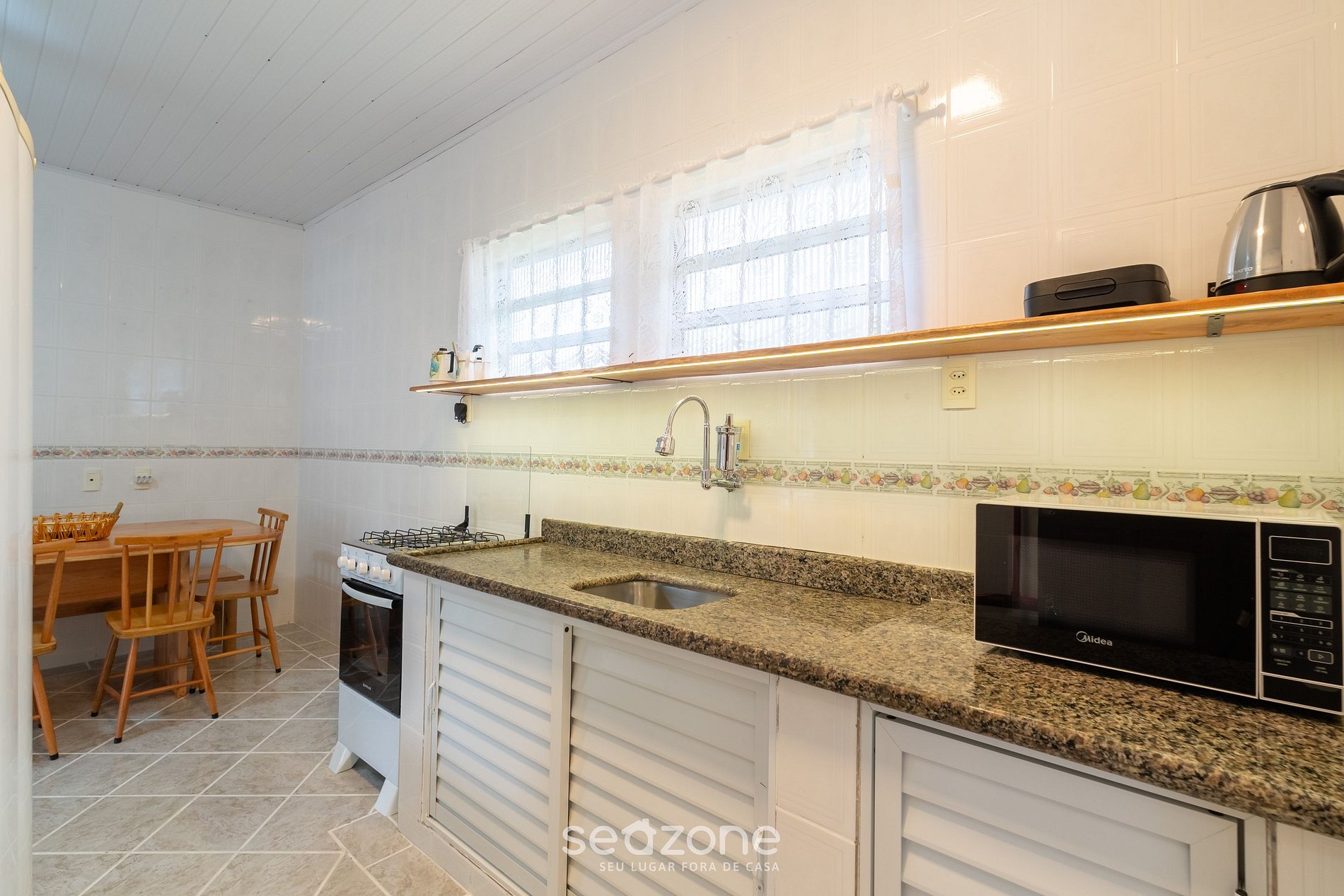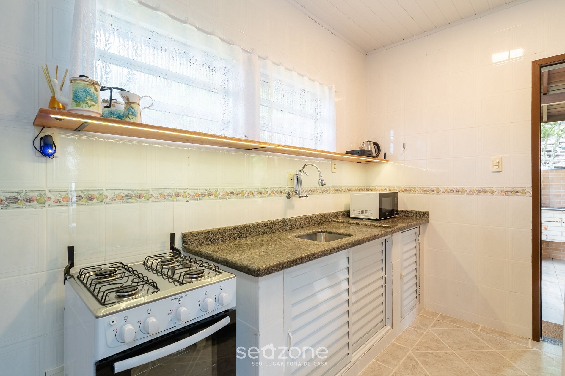 - Cocina totalmente equipada con refrigerador, estufa y horno de gas, microondas, sandwichera, kit de café (portafiltros, termo), hervidor eléctrico, copas de vino, ollas, sartenes, platos y utensilios;