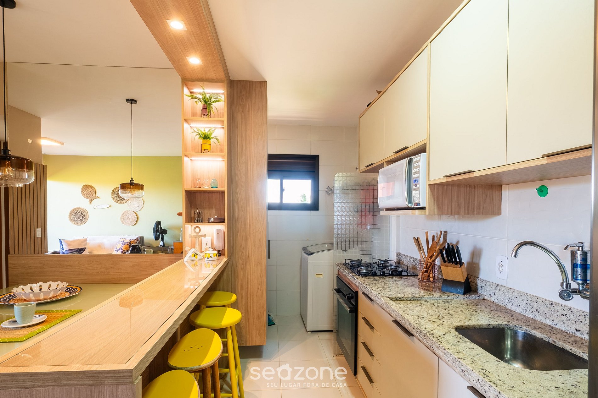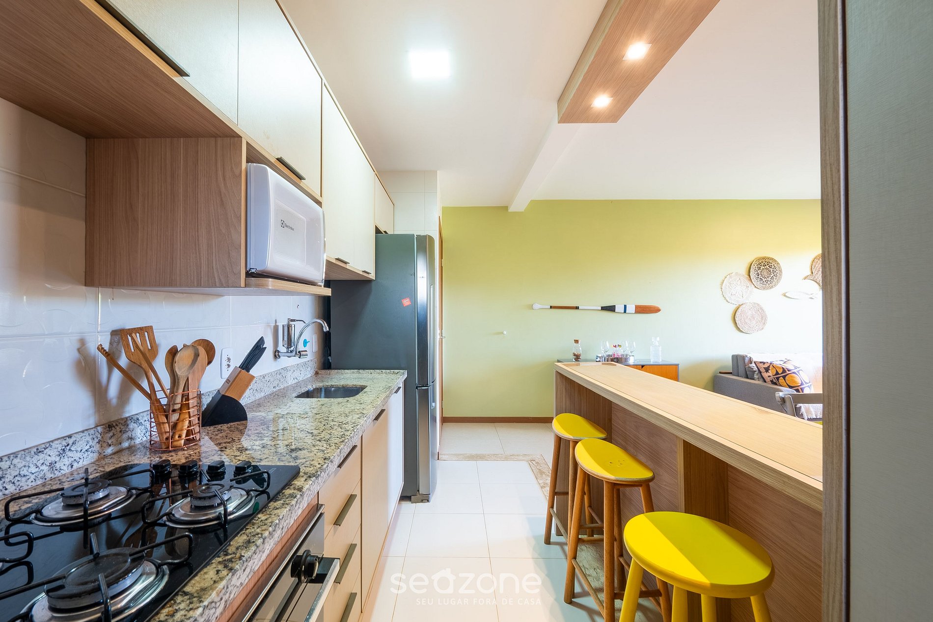 Apartamento completo a 750 m de la playa de Itacimirim, en una ubicación estratégica del litoral norte. Dispone de suite climatizada, habitación con dos camas y aire acondicionado, sala con Smart TV, cocina equipada, balcón amueblado y lavadora. Ropa de cama y baño de estándar hotelero, Wi-Fi y plaza para camioneta. Condominio con piscina.