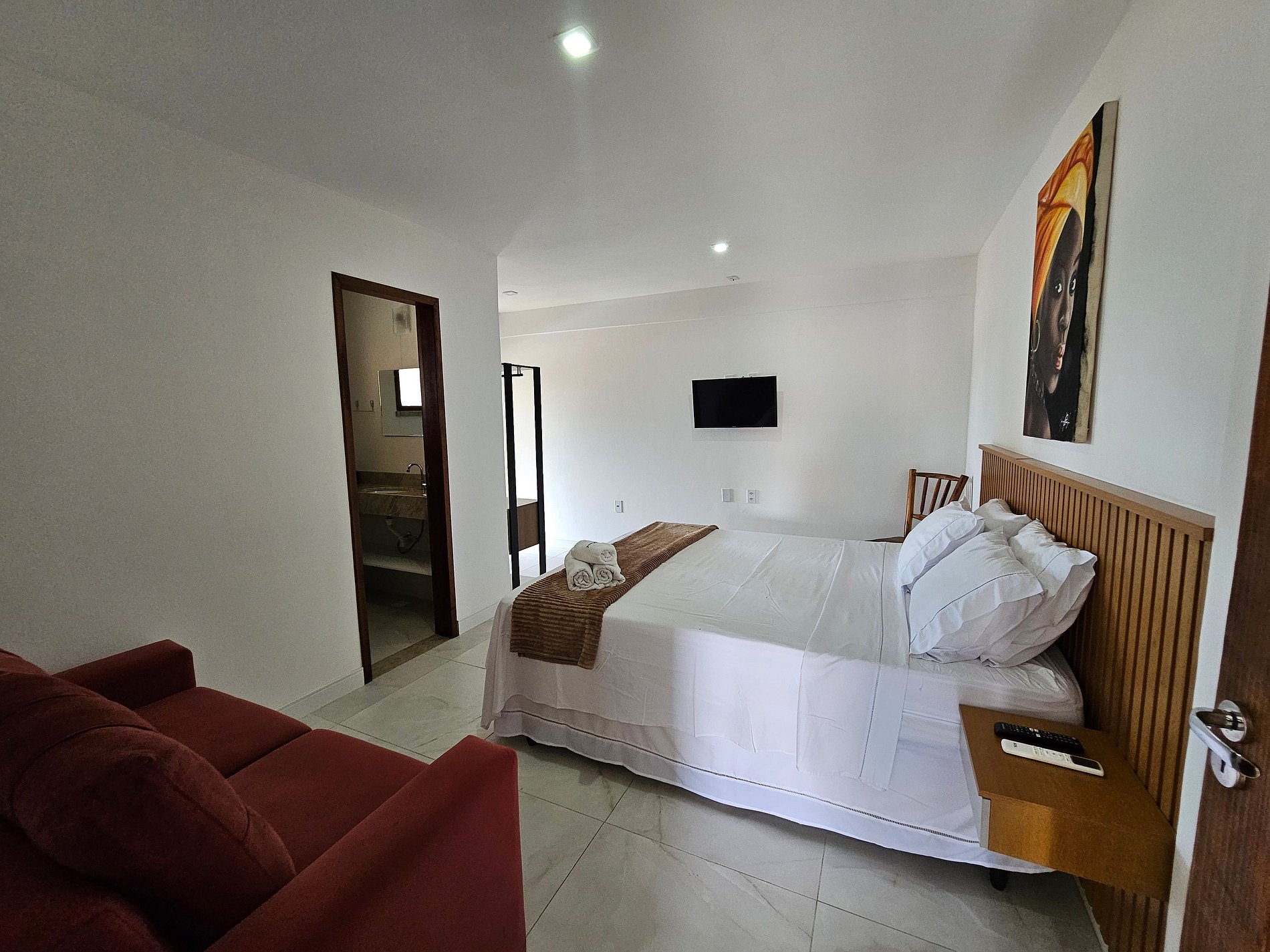 - 1 Suite con cama queen, perchero, Smart TV, aire acondicionado y balcón;
