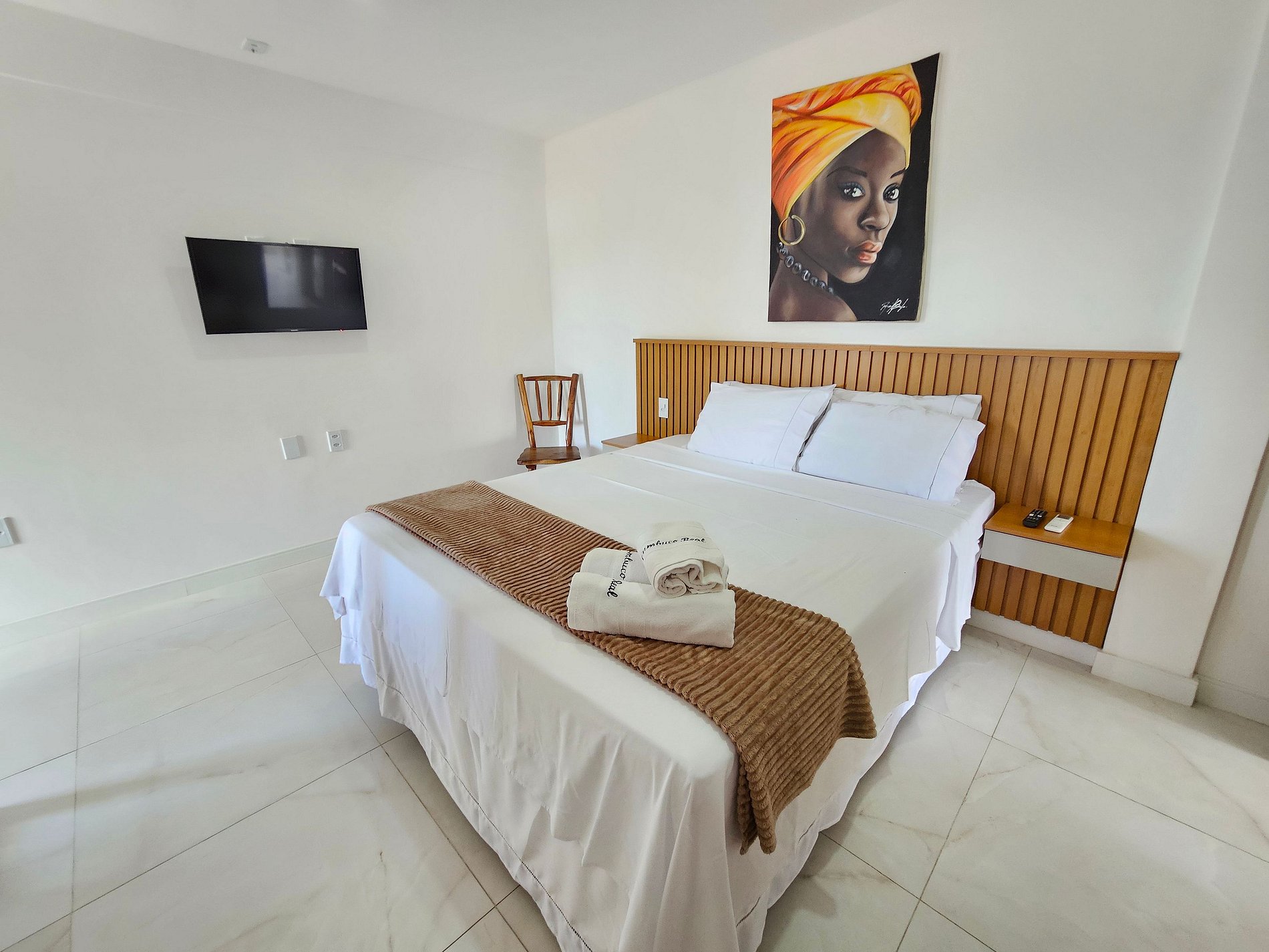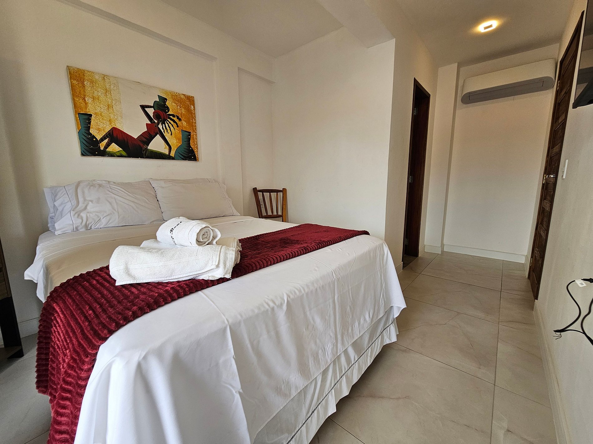 - 1 Suite con cama doble, perchero, Smart TV y aire acondicionado;