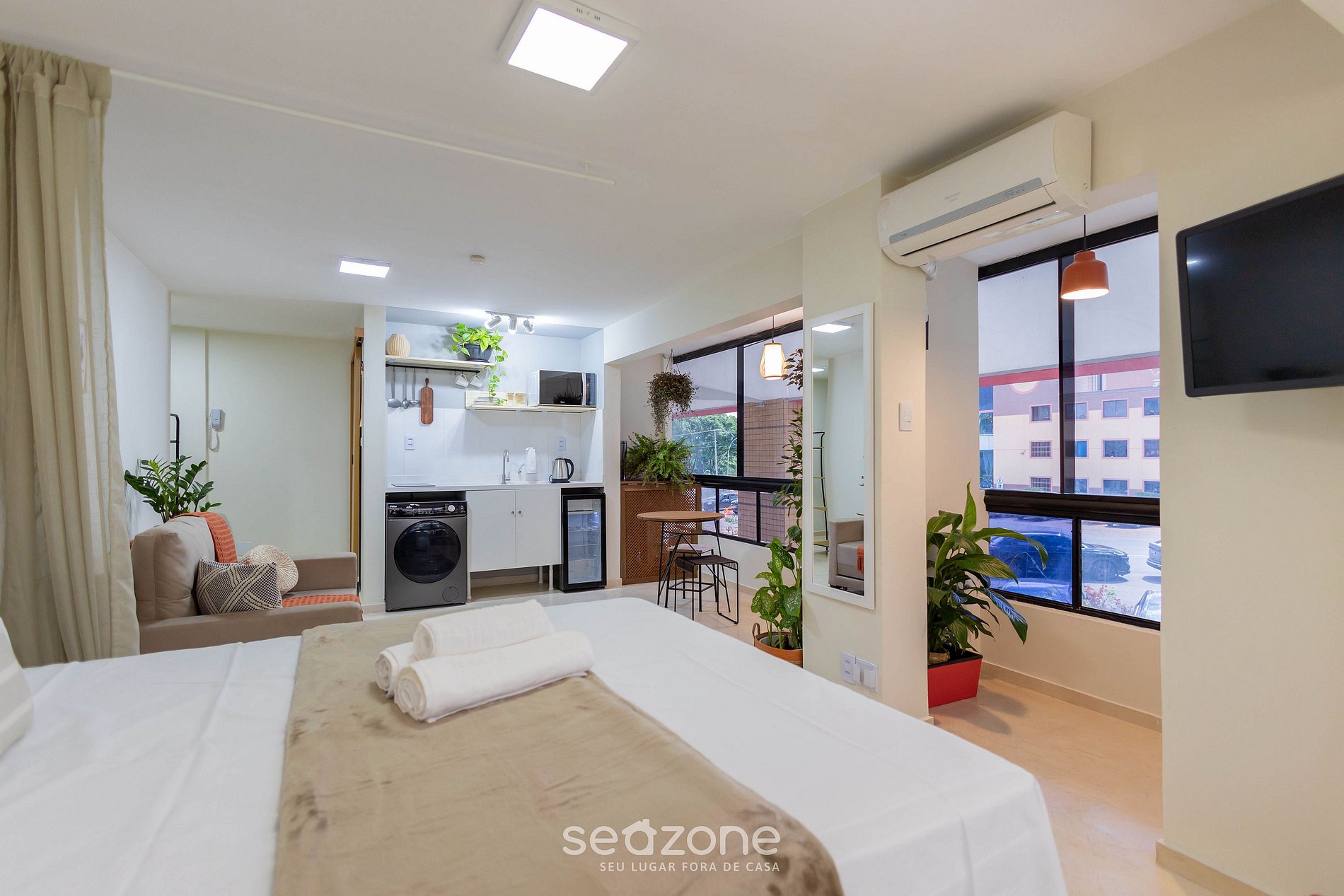 Experimenta la comodidad y practicidad en este estudio en Asa Norte. Con cocina equipada, suite con aire acondicionado, área de trabajo y chimenea, ofrece todo para que tu estancia sea perfecta. Relájate en el balcón o mira tu programa favorito en la TV. La ubicación es excelente, con fácil acceso a servicios y al Parque Olhos d'Água, ideal para caminatas.