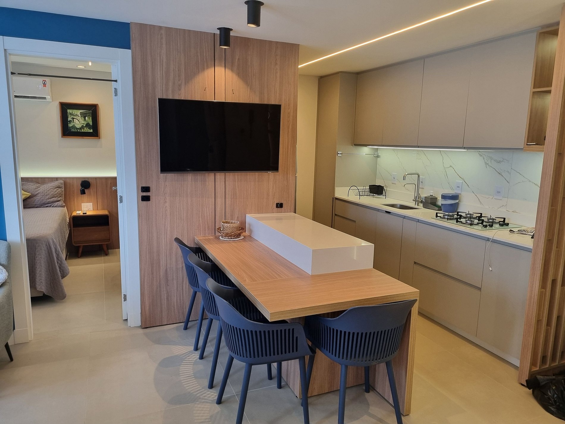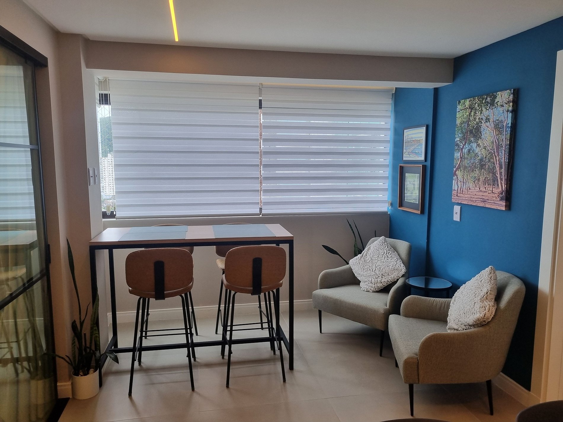 - Espacio de comedor con mesa tipo barra y 4 sillas;