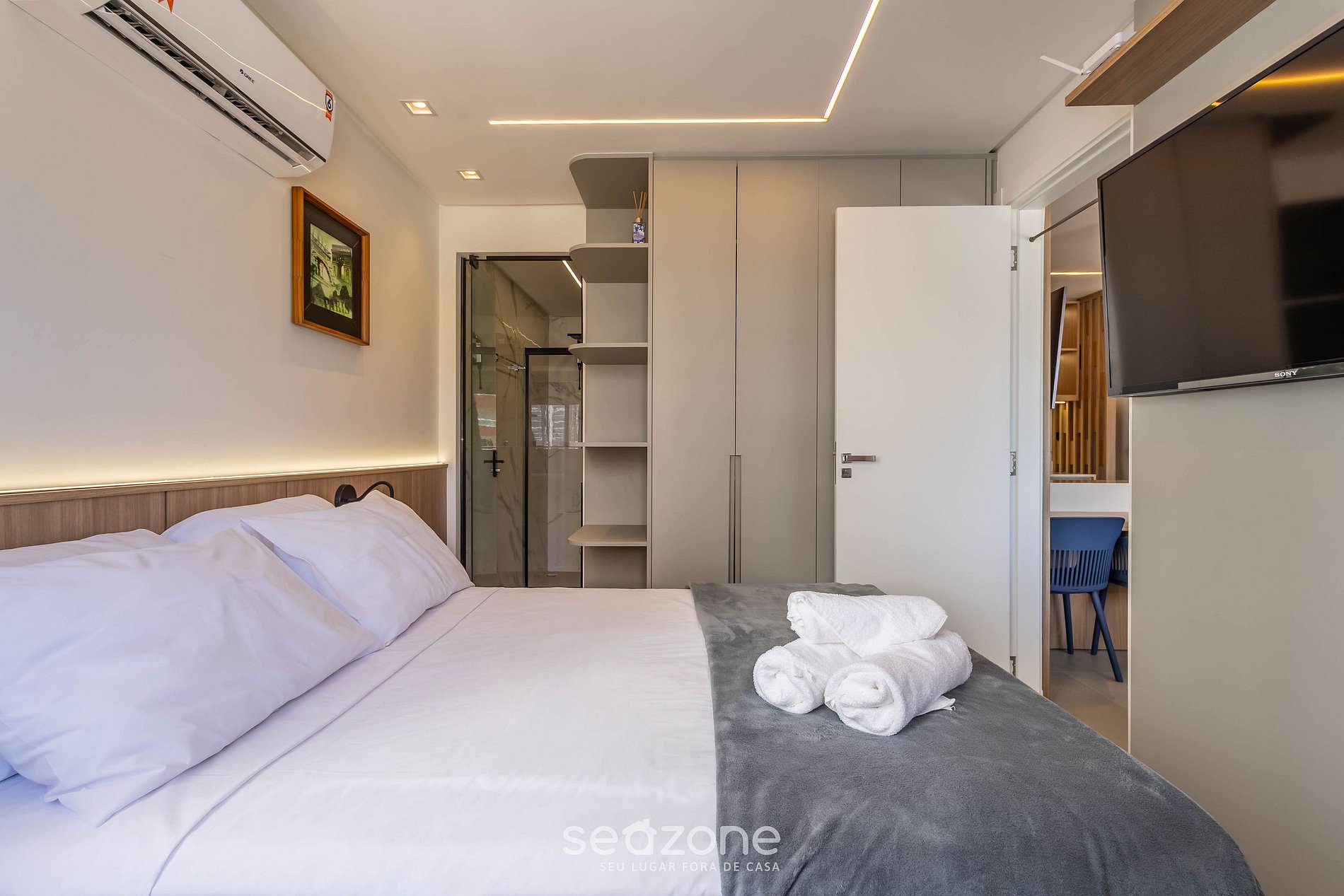 - Ropa de cama y baño de calidad hotelera (ropa de cama y toallas extra se cobran por Seazone);