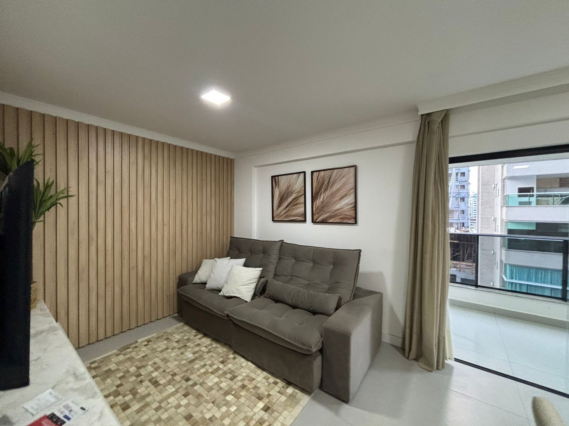 - Sala de estar con sofá, aire acondicionado y Smart TV;