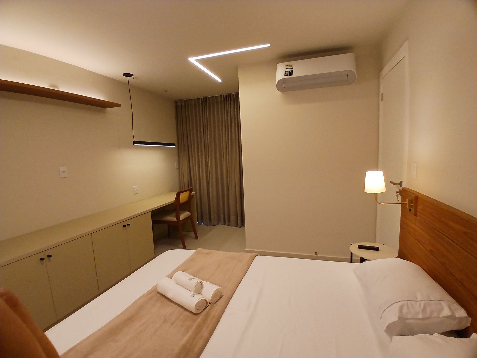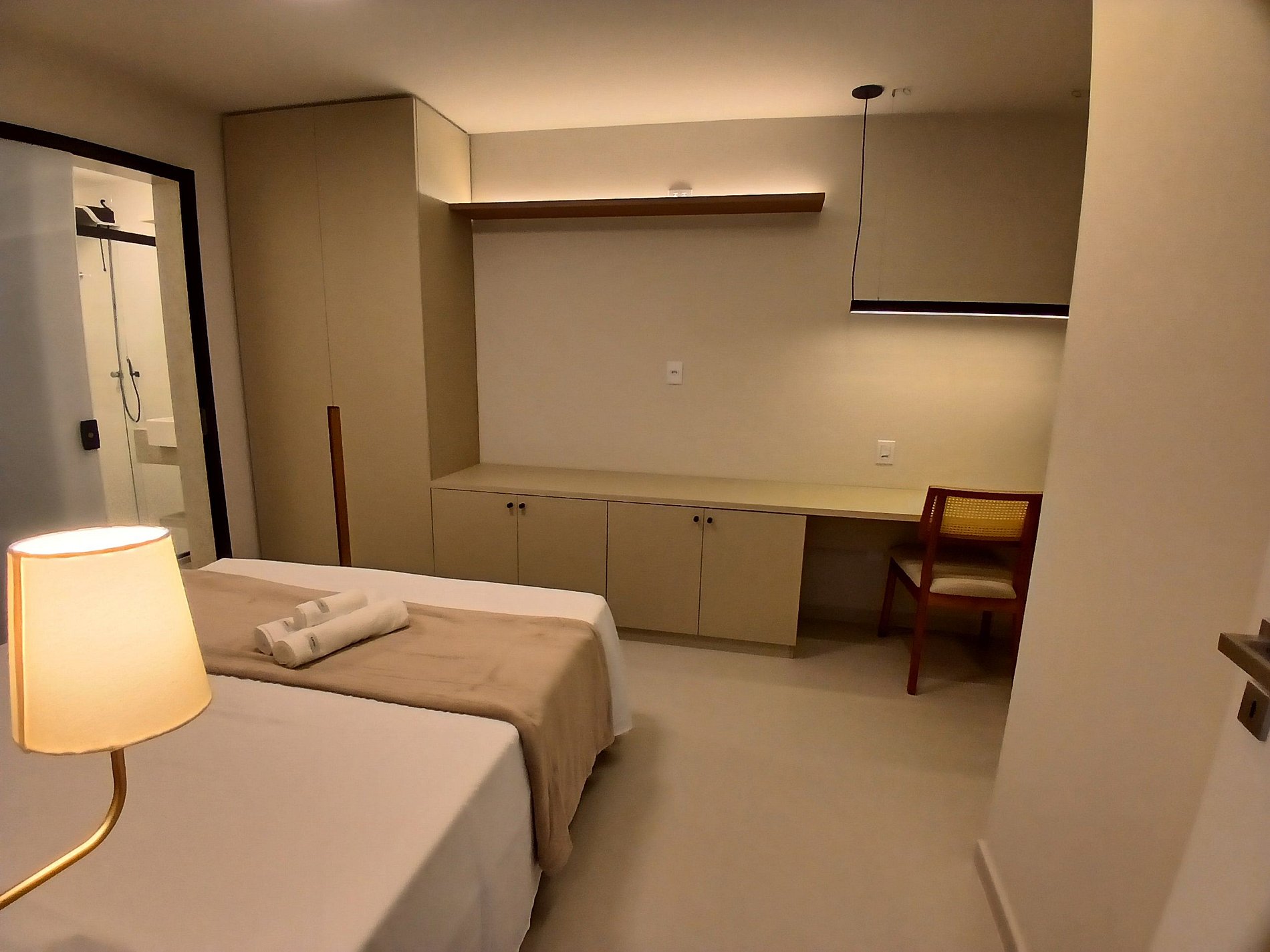 1 Suite: Con cama queen, espacio para notebook, armario y aire acondicionado.
