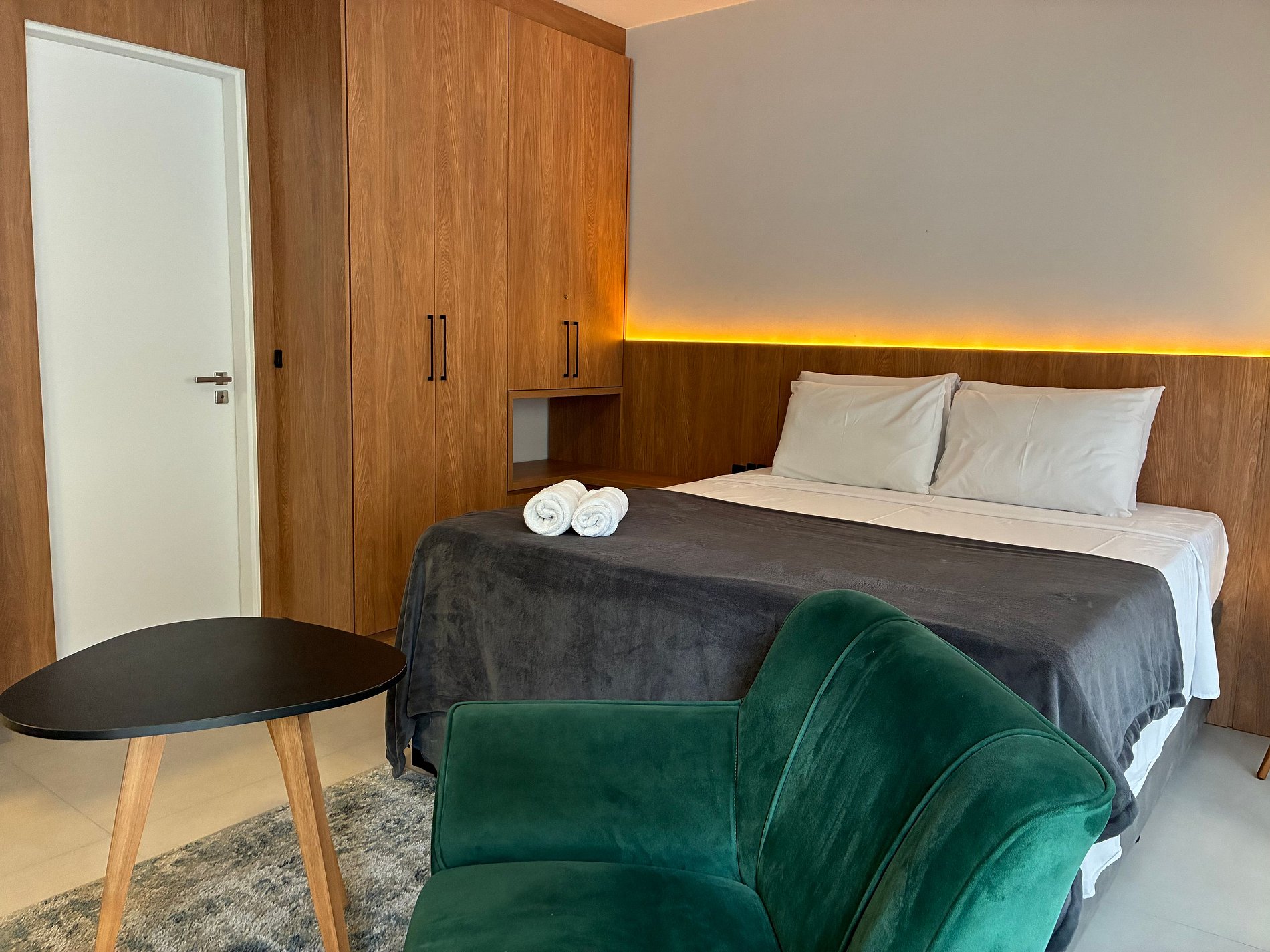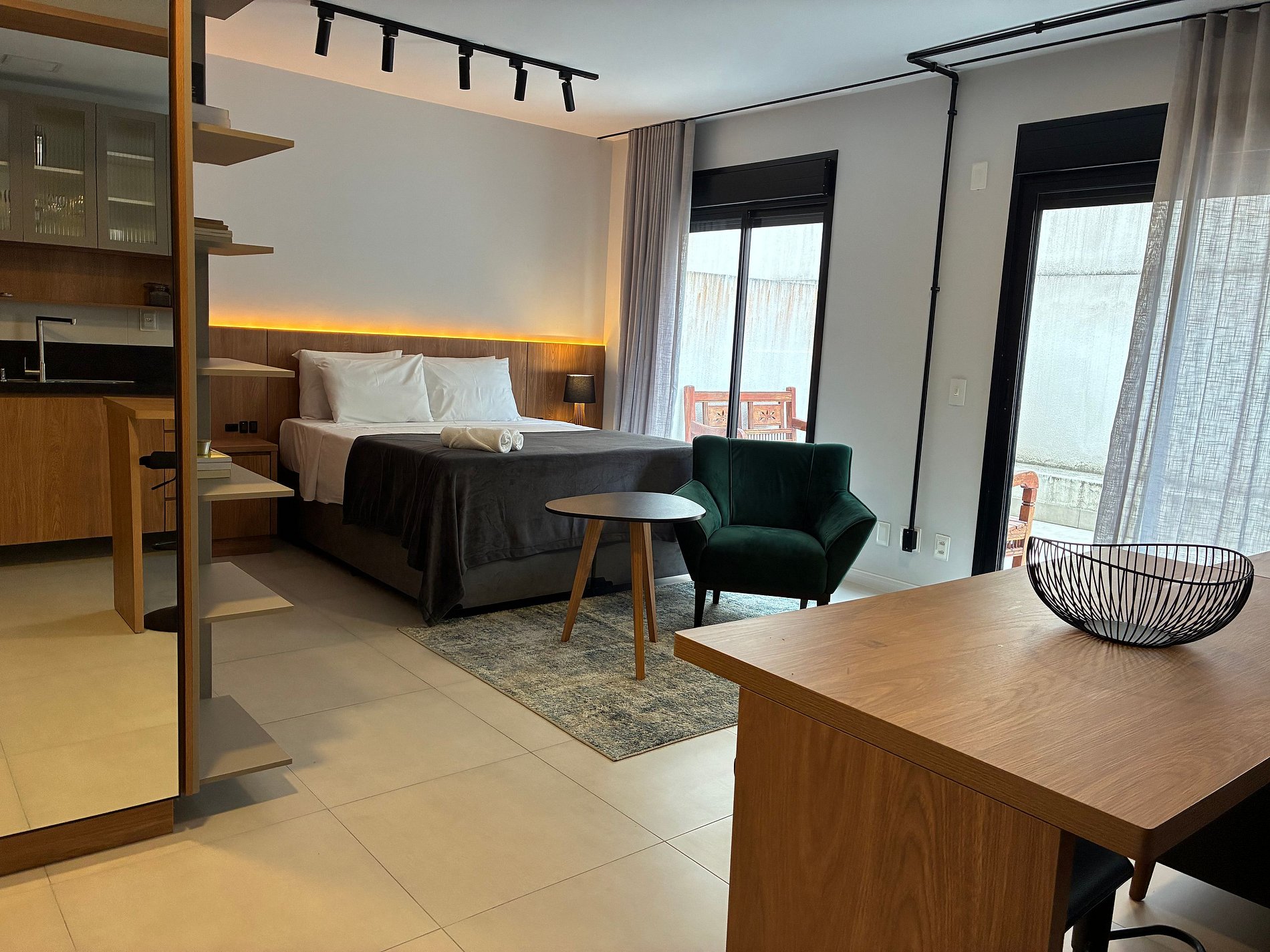 El refugio perfecto para el viajero moderno: ¡estudio climatizado con espacio para laptop! Combine trabajo y ocio con total facilidad. Equipado con aire acondicionado, Smart TV y un escritorio funcional, este espacio fue diseñado para quienes no renuncian a la eficiencia. Ubicado estratégicamente cerca de la Beira-mar Norte, tendrá lo mejor de la gastronomía y el ocio a su alcance. ¡Garantice su reserva y optimice sus días en la capital catarinense!