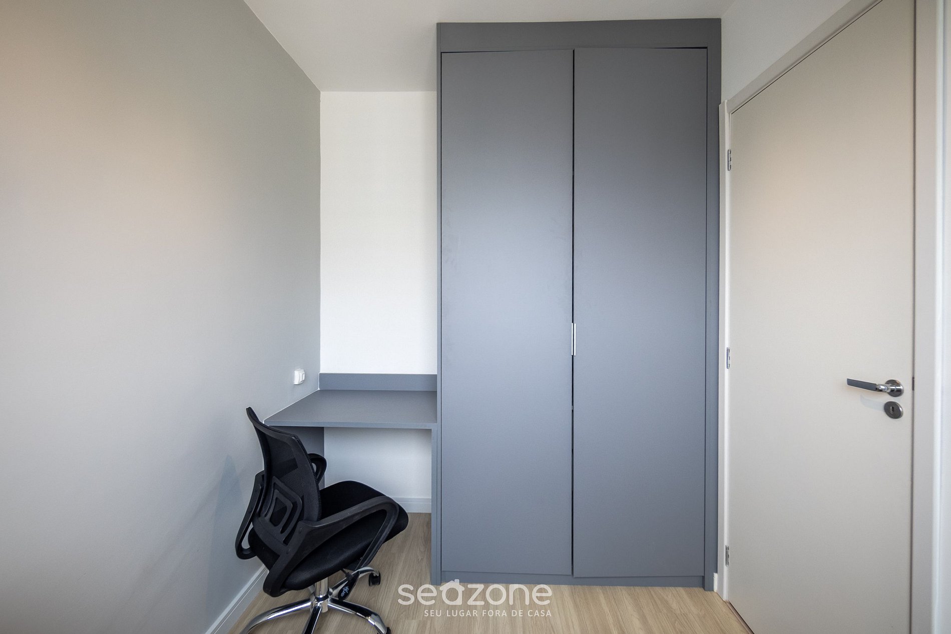 - 1 dormitorio con cama individual, armario y escritorio para estudio/trabajo;