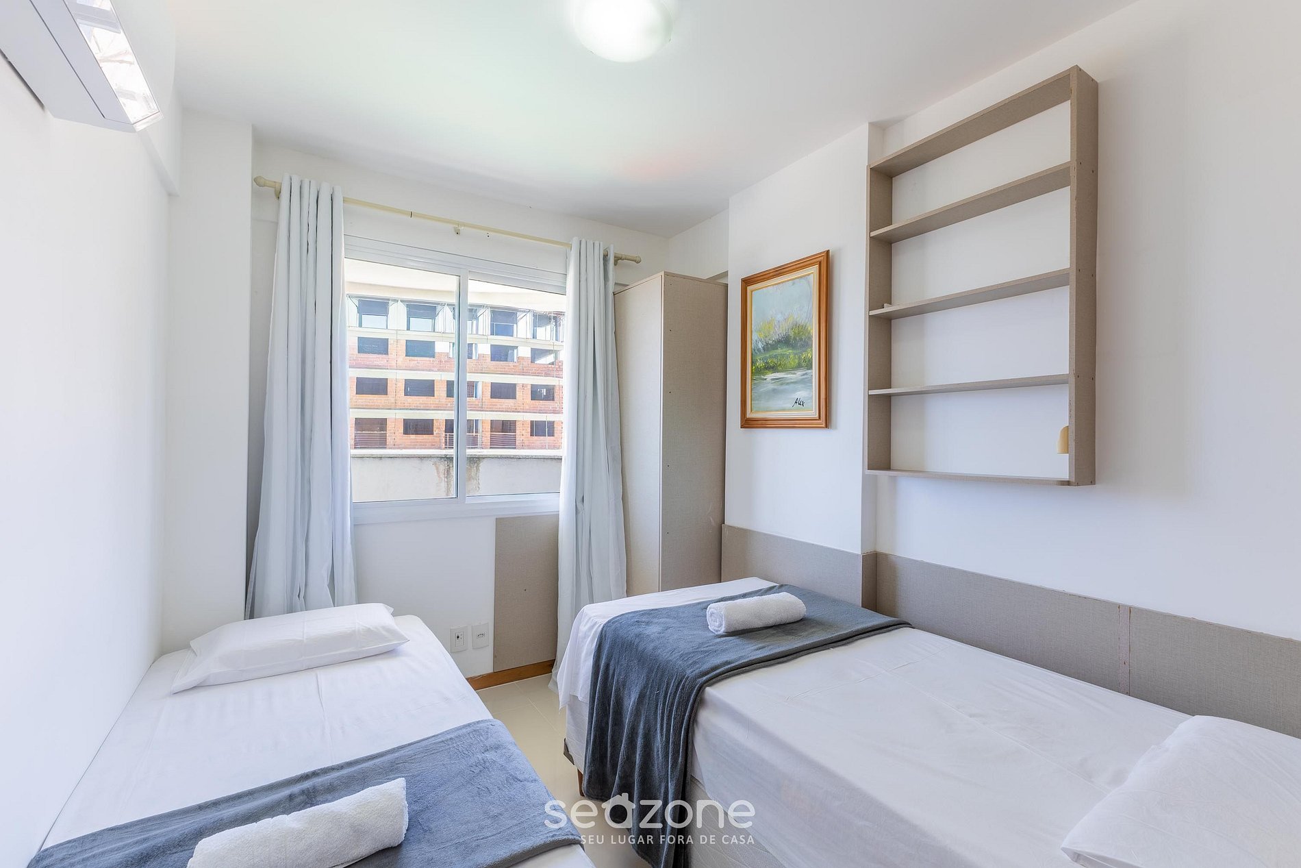 - 1 Dormitorio con 2 camas individuales, armario y aire acondicionado;