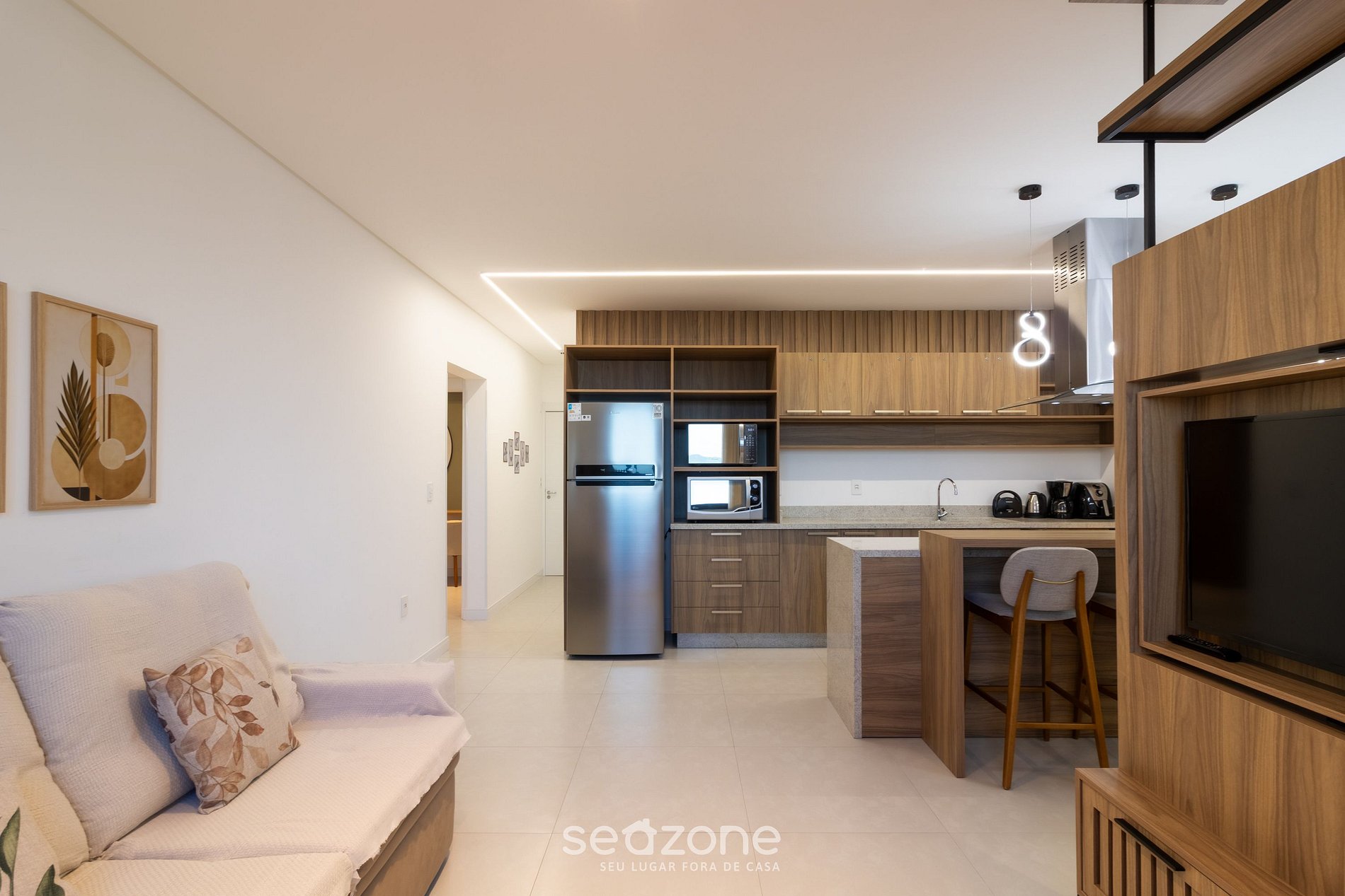 Apto con tres suites bien distribuidas, a solo 90 m de la playa de Perequê, combinando confort y una ubicación privilegiada. Las suites cuentan con camas dobles, climatización y cortinas black-out, una de ellas con escritorio para trabajo. Sala de estar acogedora, cocina completa y espacio gourmet con parrilla completan la propuesta, además de plaza de garaje cubierta.