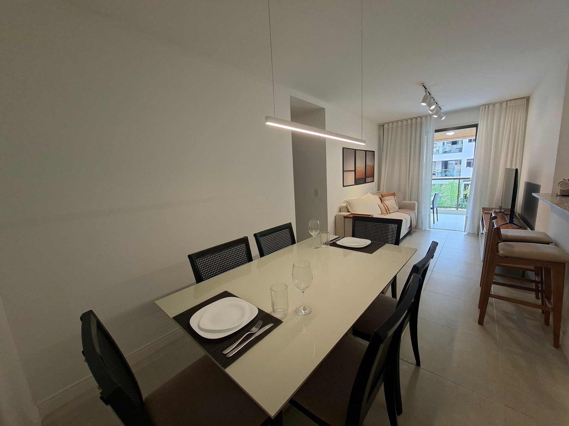 Apartamento climatizado en Cabo Frio, con tres dormitorios, uno de ellos en suite, sala con sofá y Smart TV, cocina equipada y área de comedor. El balcón con parrilla, vista a la piscina y plaza de garaje complementa la estancia. Condominio con piscina y parque infantil. Ubicado en Algodoal, cerca de la Praia do Forte, mercados, panaderías y restaurantes.