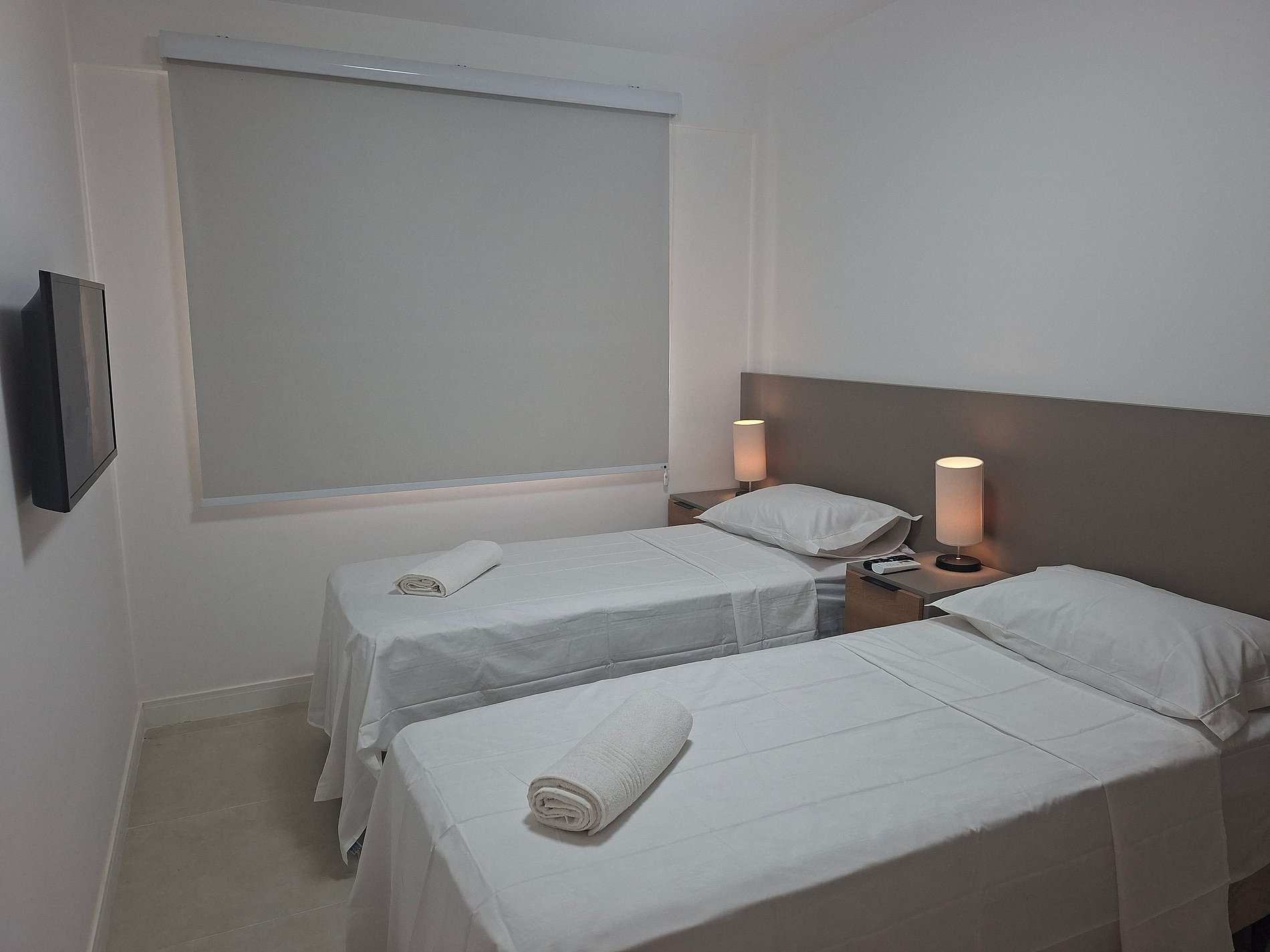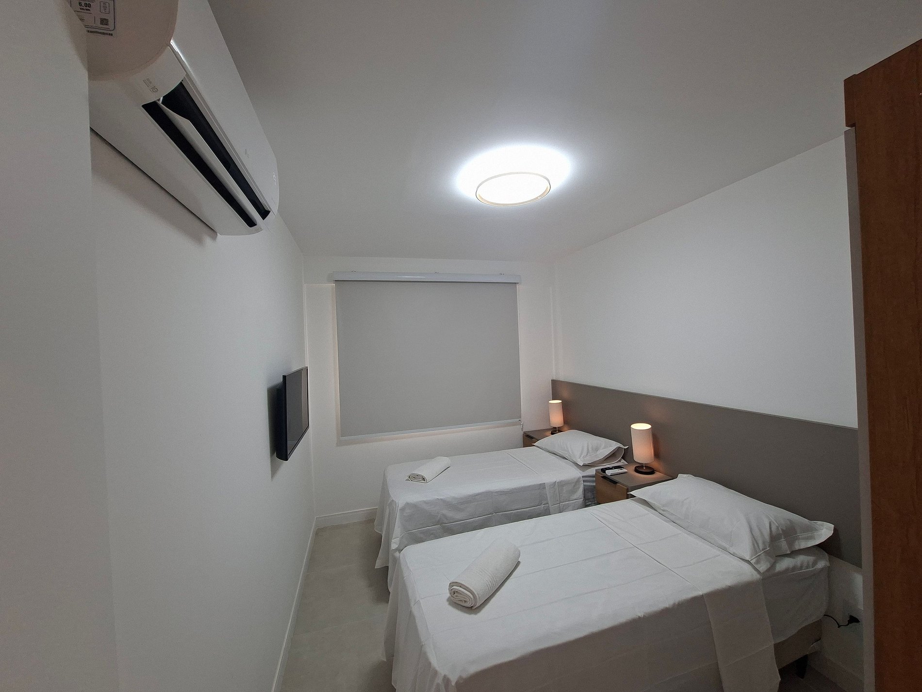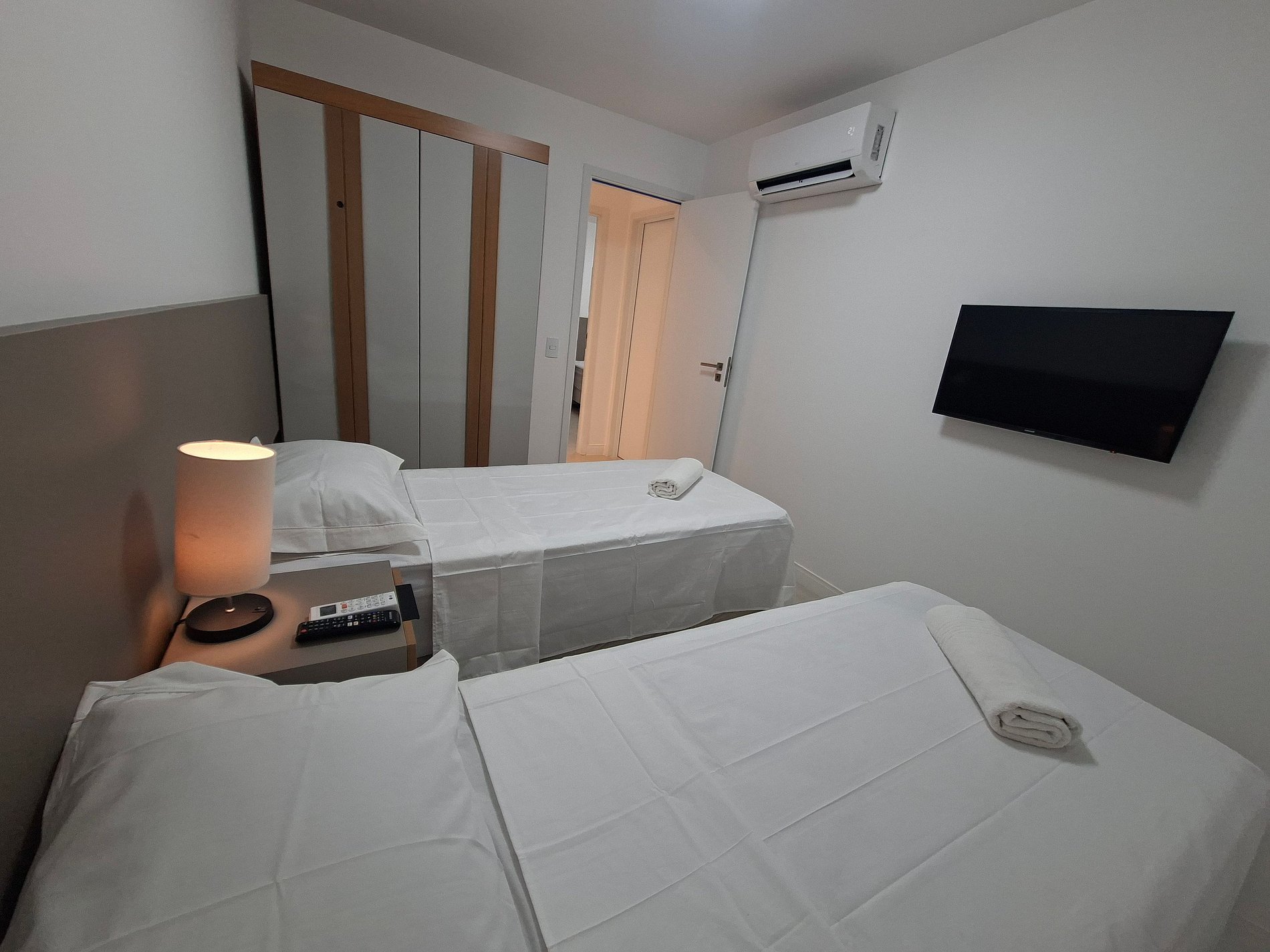 1 Dormitorio con dos camas individuales, Smart TV, armario y aire acondicionado;