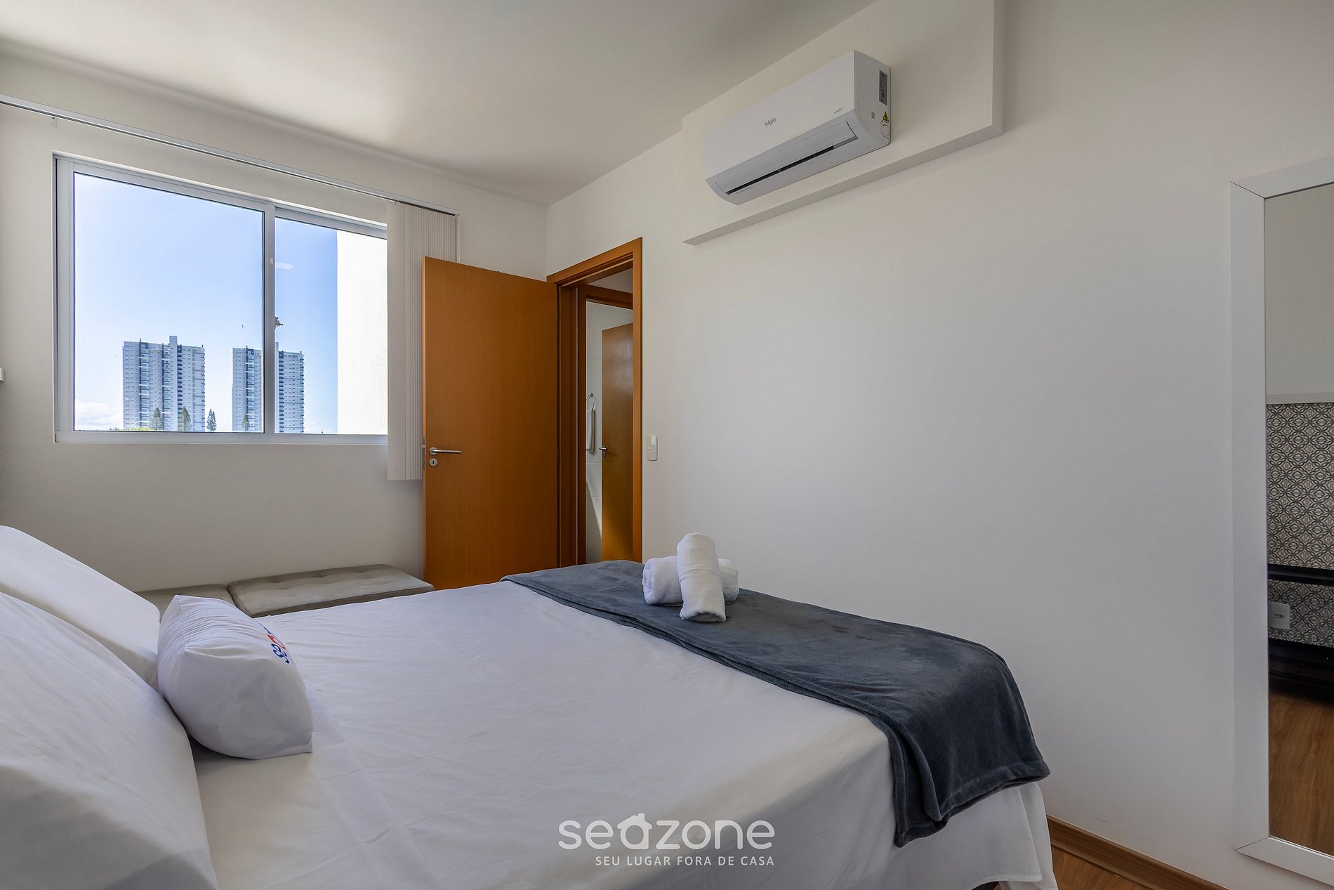 El apartamento cuenta con una cama queen size, cocina totalmente equipada, aire acondicionado, balcón con vista parcial al mar y barbacoa privada para su total comodidad. El condominio mejora la experiencia con acceso directo a la playa, piscina, jacuzzis, canchas deportivas, sala de juegos y área de juegos infantiles.