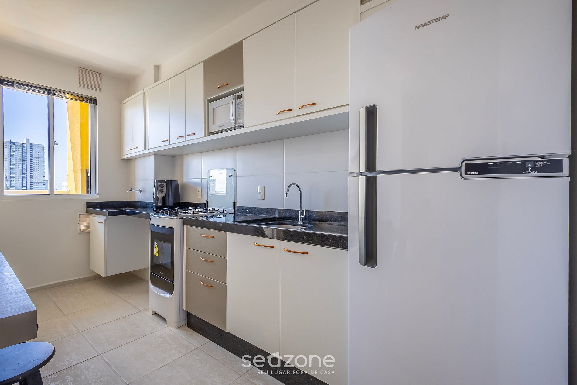 - Cocina totalmente equipada con refrigerador, estufa y horno de gas, microondas, freidora de aire, sandwichera, kit de café (termo, filtro/colador), hervidor eléctrico, licuadora, copas de vino, ollas, sartenes, platos y utensilios;
