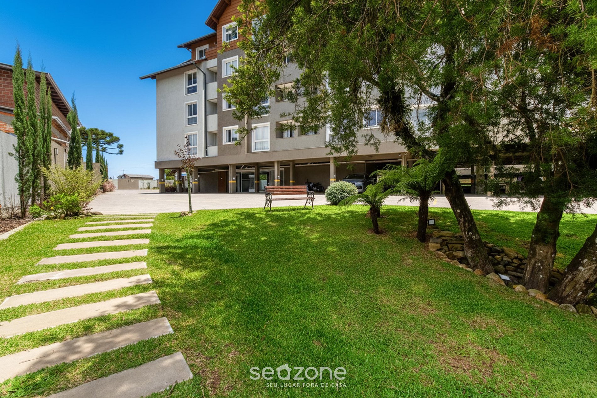 Este condominio reúne apartamentos bien equipados en un entorno seguro y rodeado de naturaleza. Con áreas comunes agradables, espacios exteriores y el clima típico de la sierra, ofrece una experiencia acogedora a pocos minutos del centro de Canela y de Gramado.