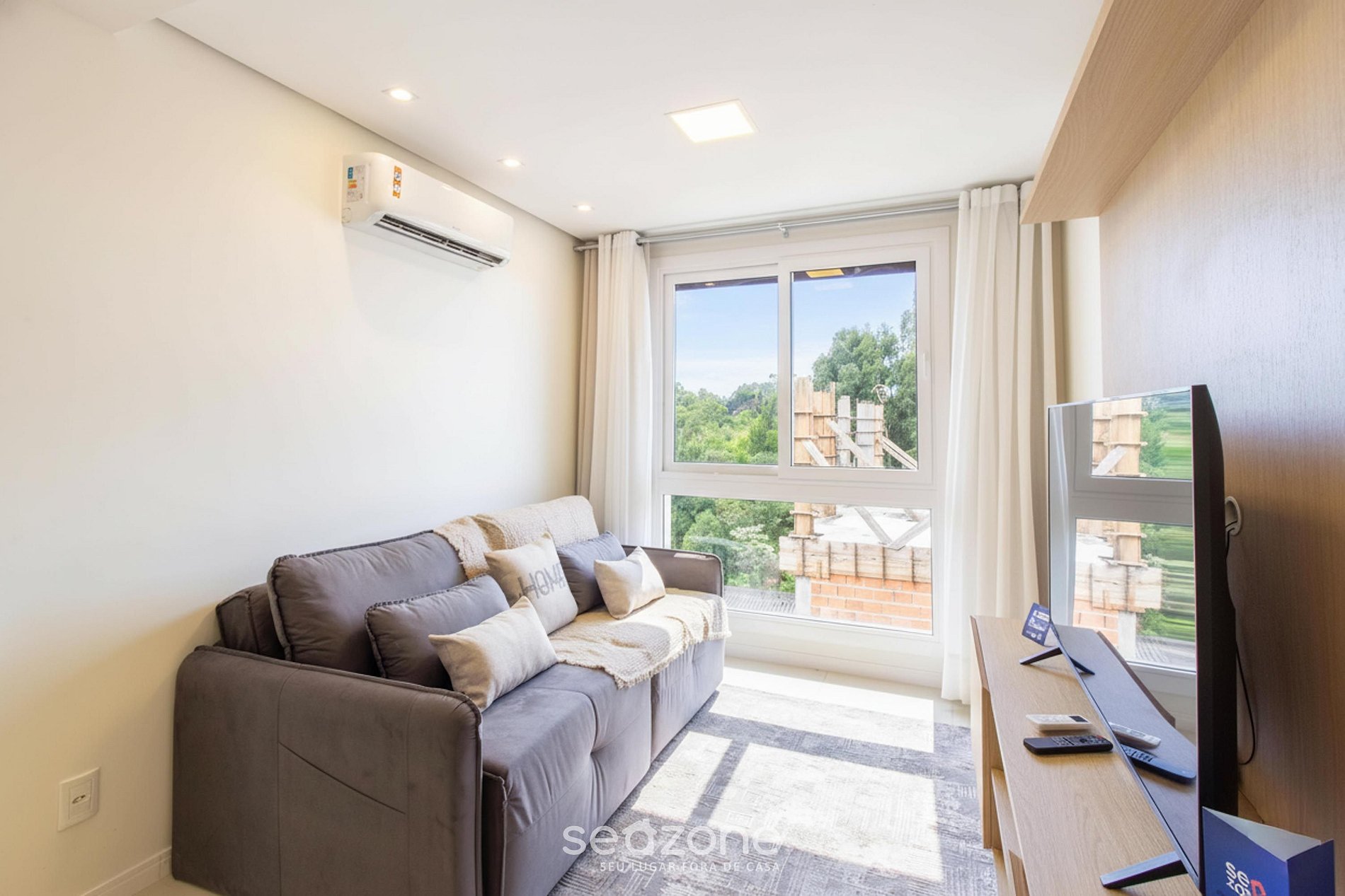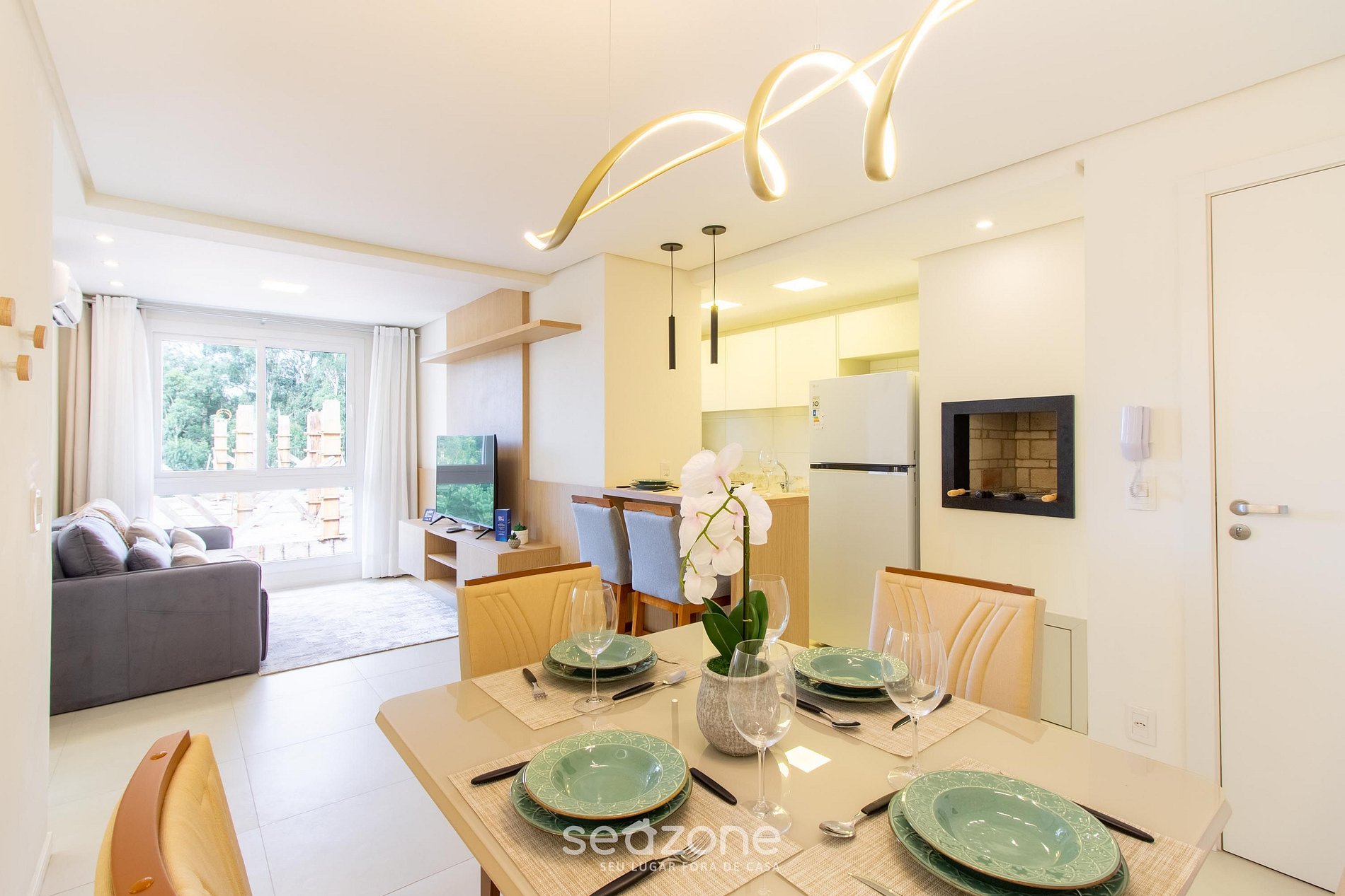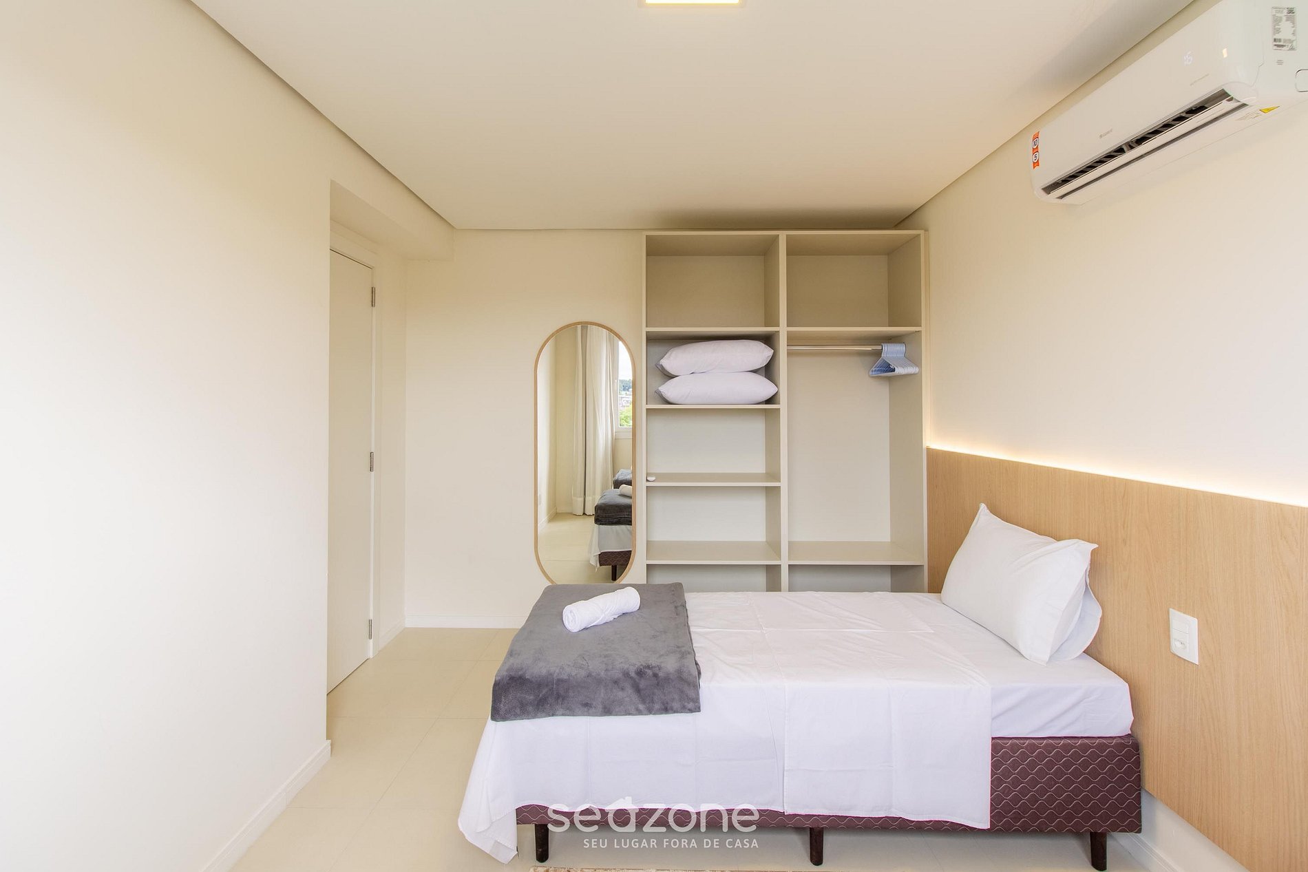 A pocos minutos del centro, este moderno apartamento ofrece una experiencia completa con 2 habitaciones climatizadas (1 cama queen + 2 individuales), sala con Smart TV y aire acondicionado, cocina totalmente equipada y parrilla privada integrada al ambiente. Acabados elegantes y una distribución funcional elevan tu estadía en la Serra Gaúcha.