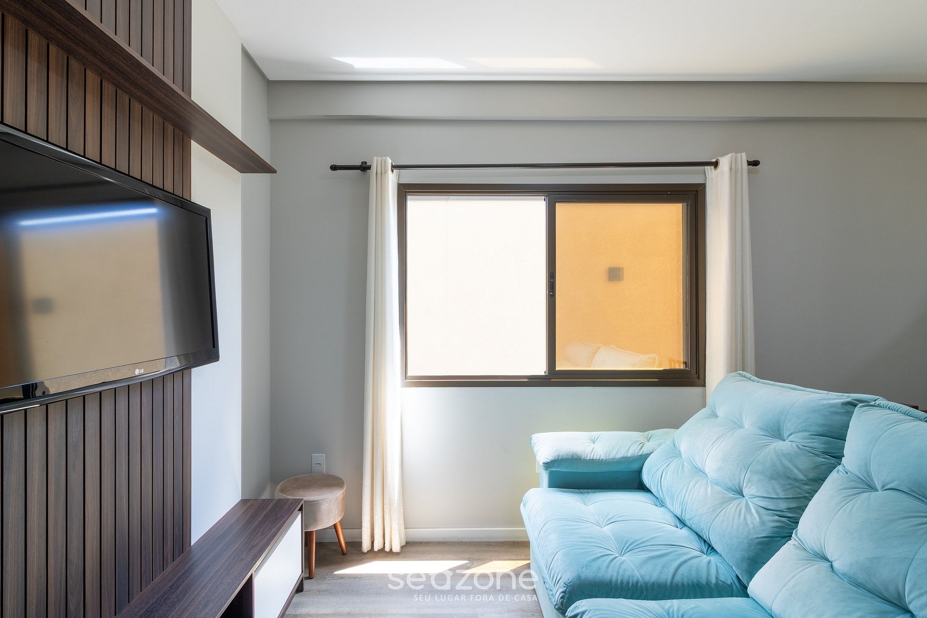 - Sala de estar con sofá y TV;