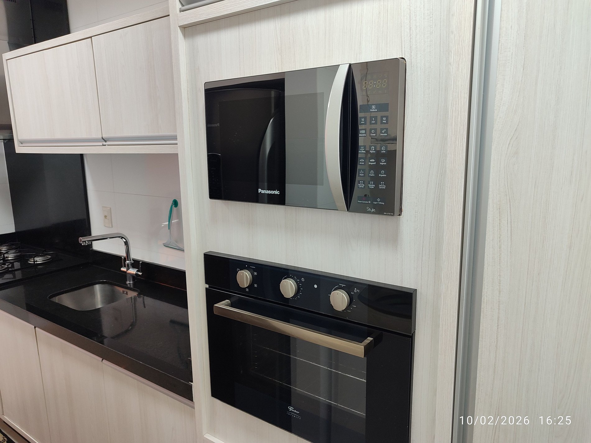Cocina completa con heladera, anafe a gas, horno eléctrico, microondas, licuadora, tetera eléctrica, kit de café (soporte para filtro, termo), sandwichera, ollas, vajilla y utensilios;