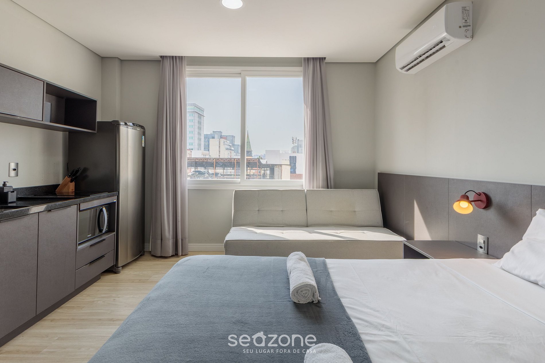 ¡Este es tu punto de partida ideal en Porto Alegre! Un acogedor estudio en el Centro Histórico con todas las comodidades, como una cama queen, aire acondicionado, sofa cama, televisión, cocina y espacio para comer. ¡También contamos con una piscina en las áreas comunes! La ubicación céntrica facilita explorar la ciudad. Cerca, encontrarás lugares como el Museo de Arte de RS y la Casa de Cultura Mario Quintana. ¡Ven y conoce esta rica cultura local!