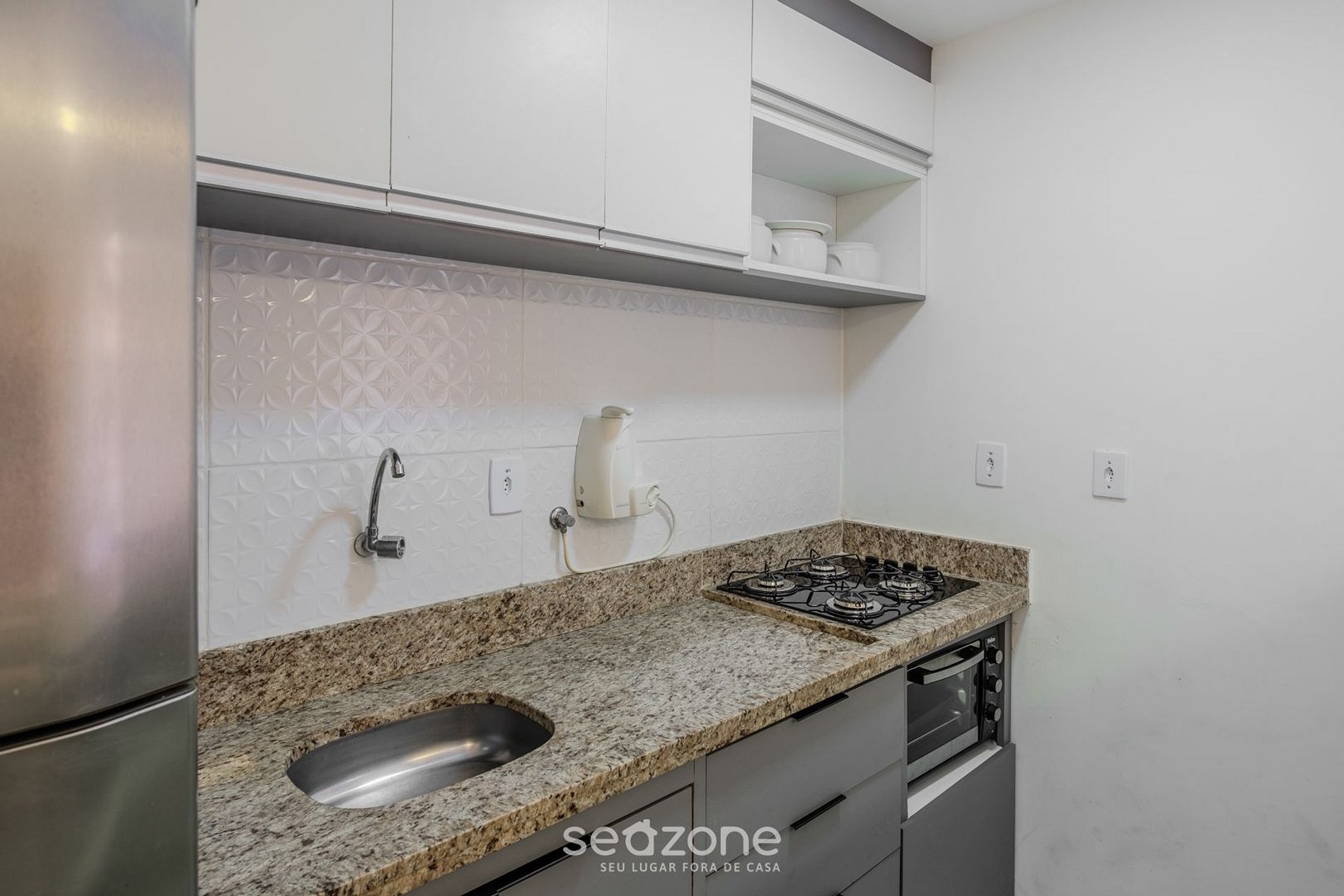 - Cocina completa con refrigerador, estufa, horno, microondas, sandwichera, tetera, licuadora, copas de vino, ollas, vajilla y utensilios;