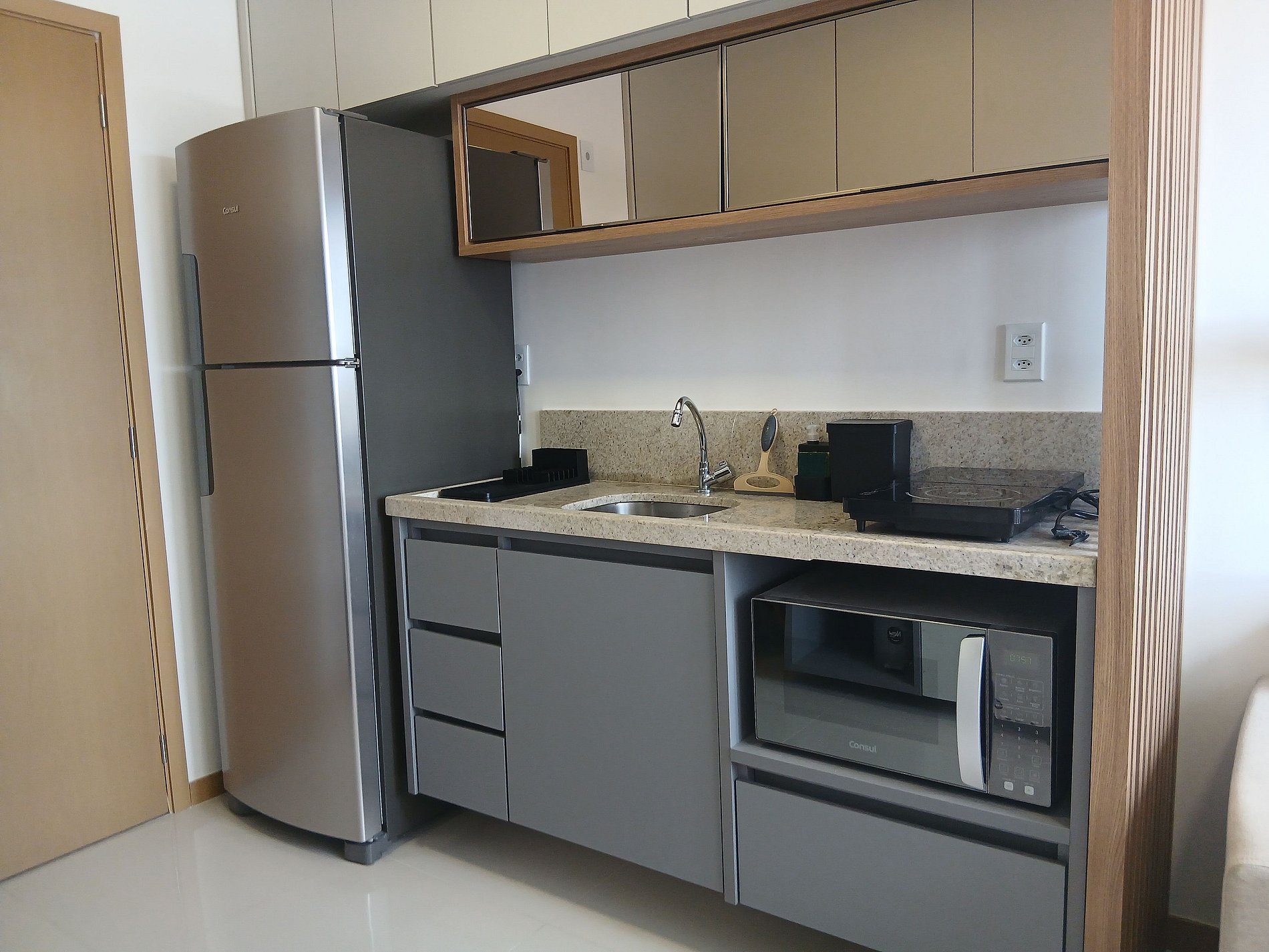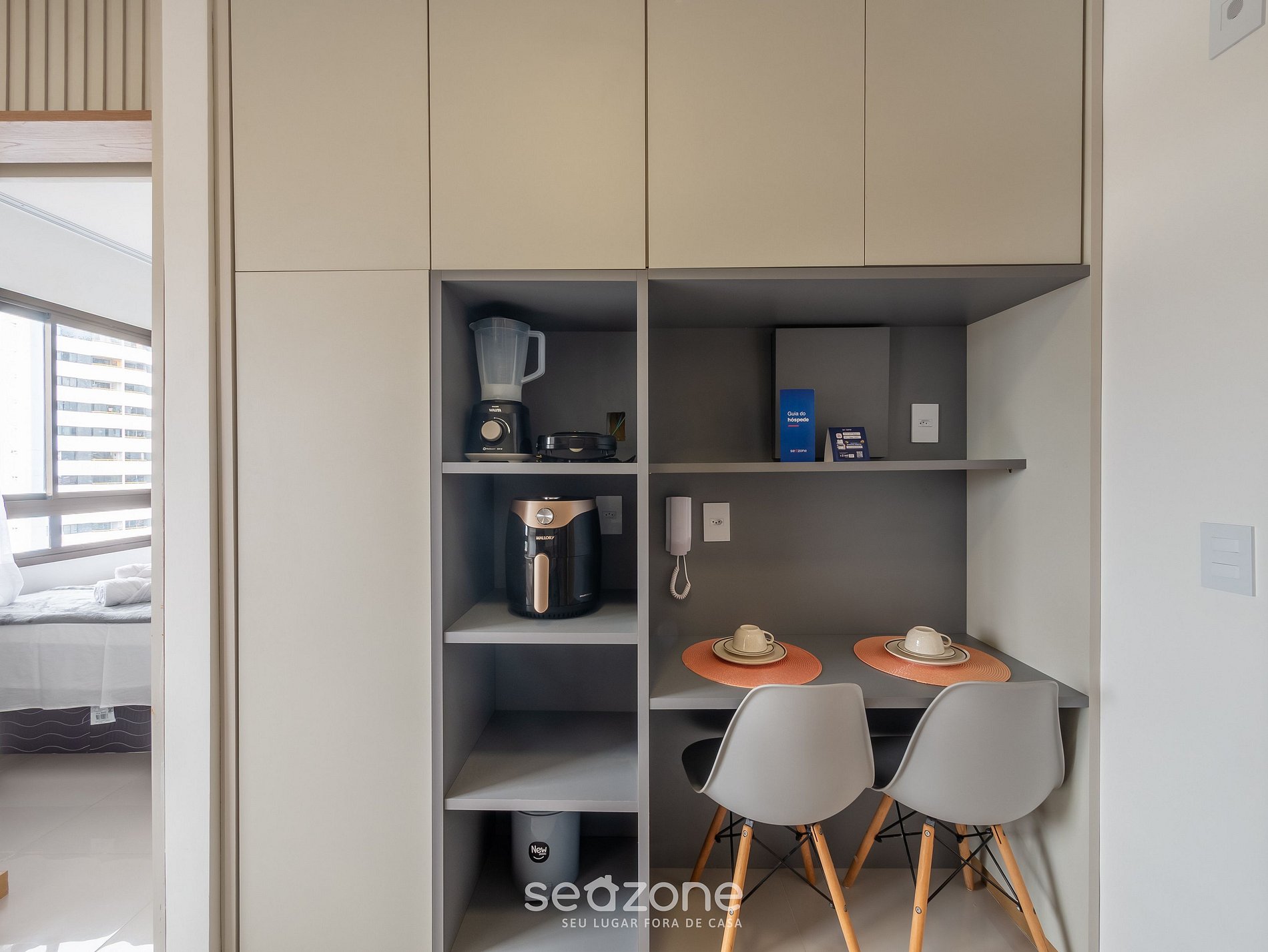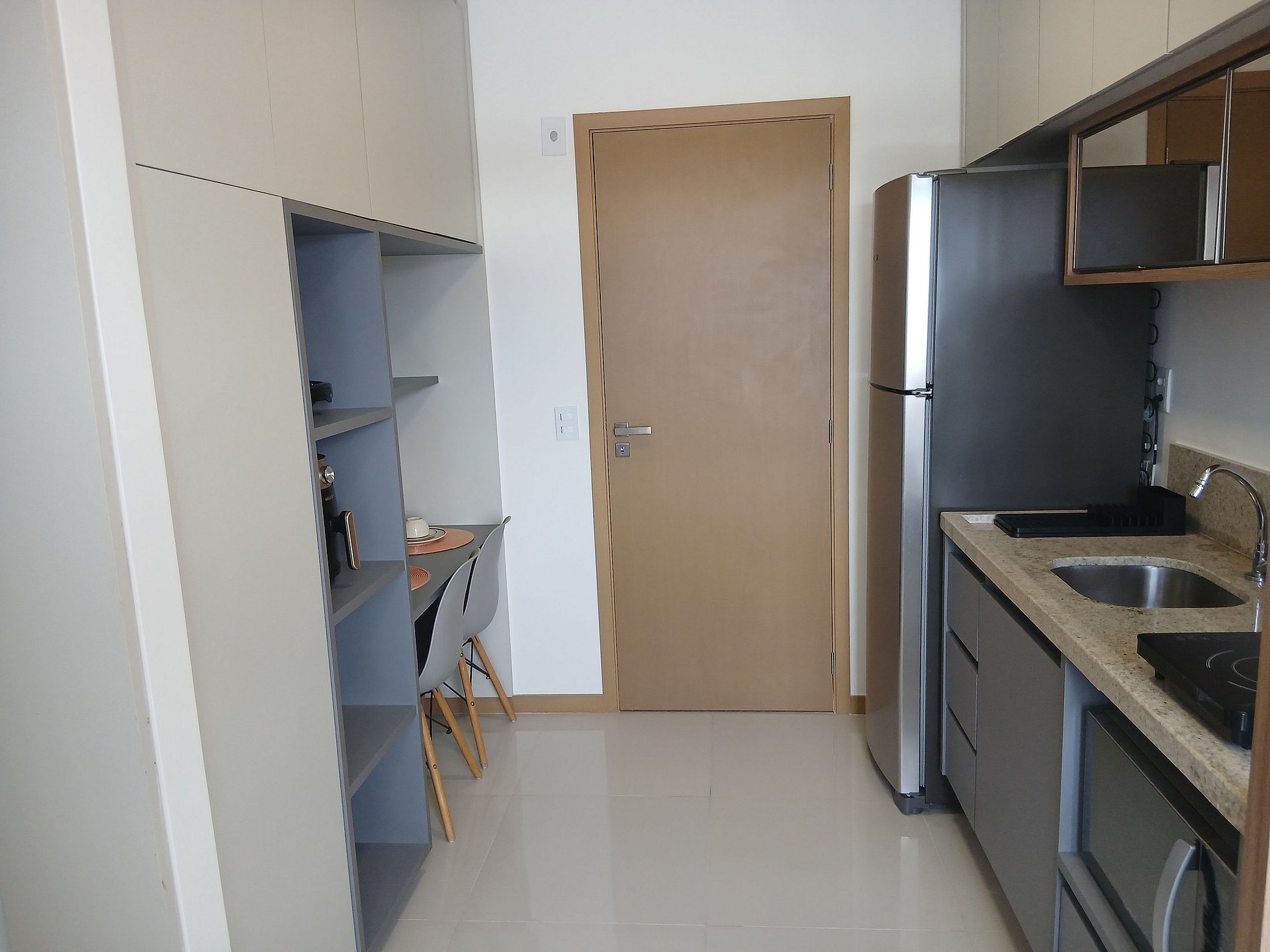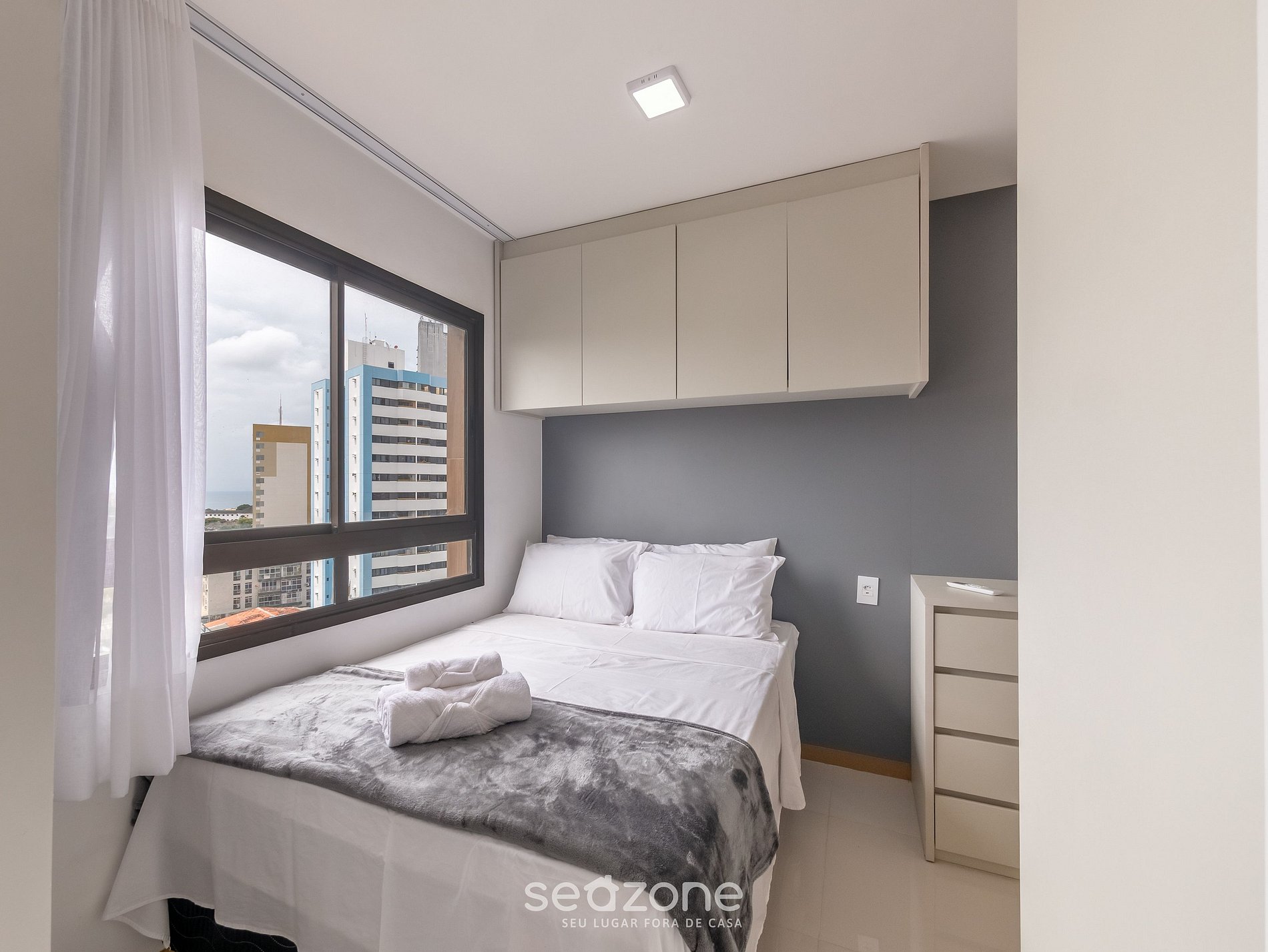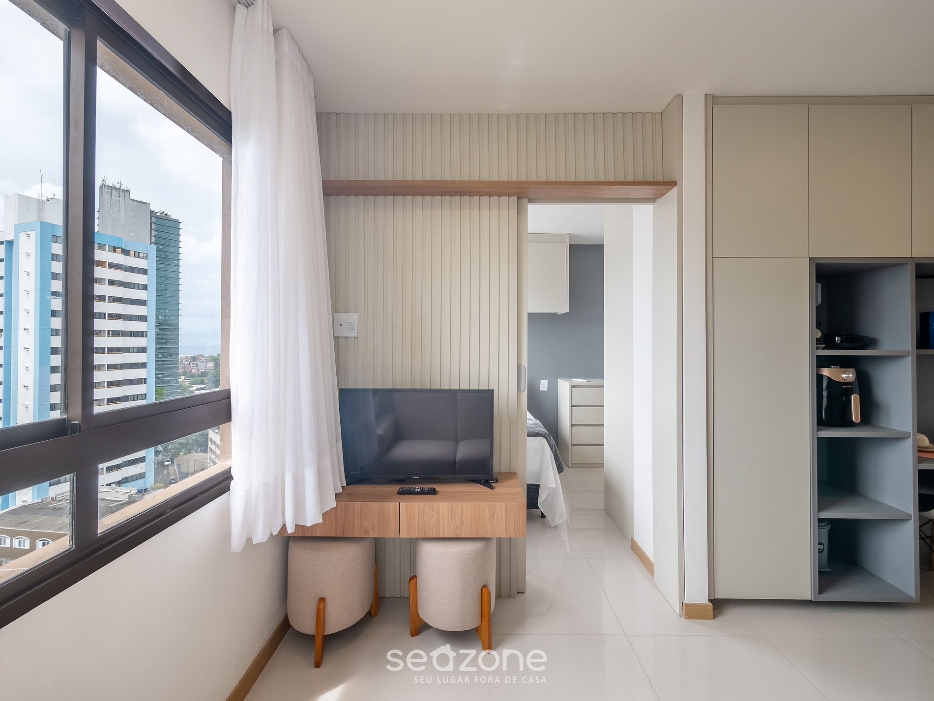 Dpto climatizado con cama matrimonial y armario, sala acogedora con sofá y Smart TV, además de cocina integrada a la barra de comidas. Garaje cubierto amplio y ropa de cama de estándar hotelero elevan el nivel de confort. Edificio con piscina, gimnasio y espacio de coworking. En zona valorizada, cerca de Rio Vermelho, universidades, centros culturales, gastronomía y la orilla del mar.