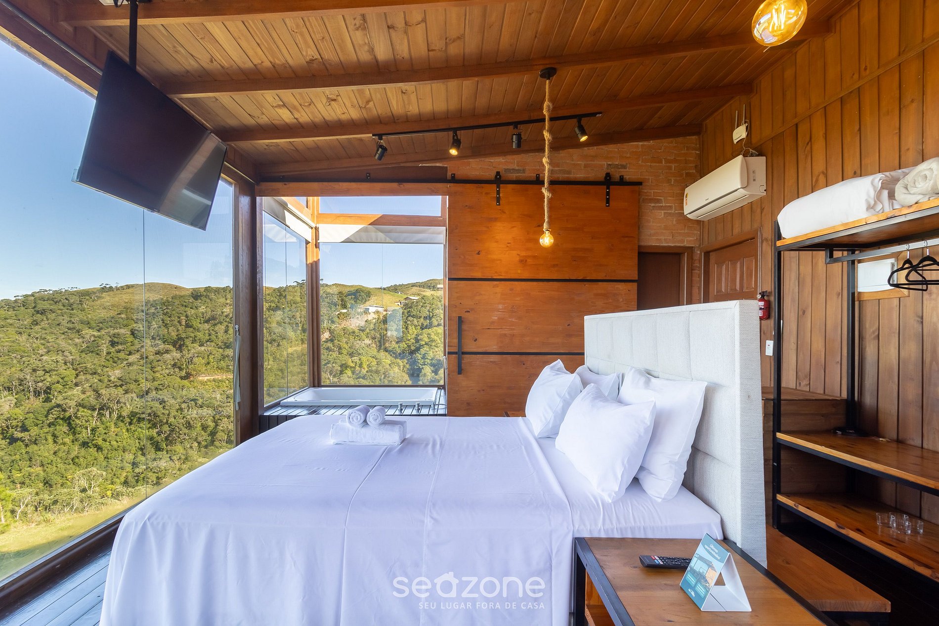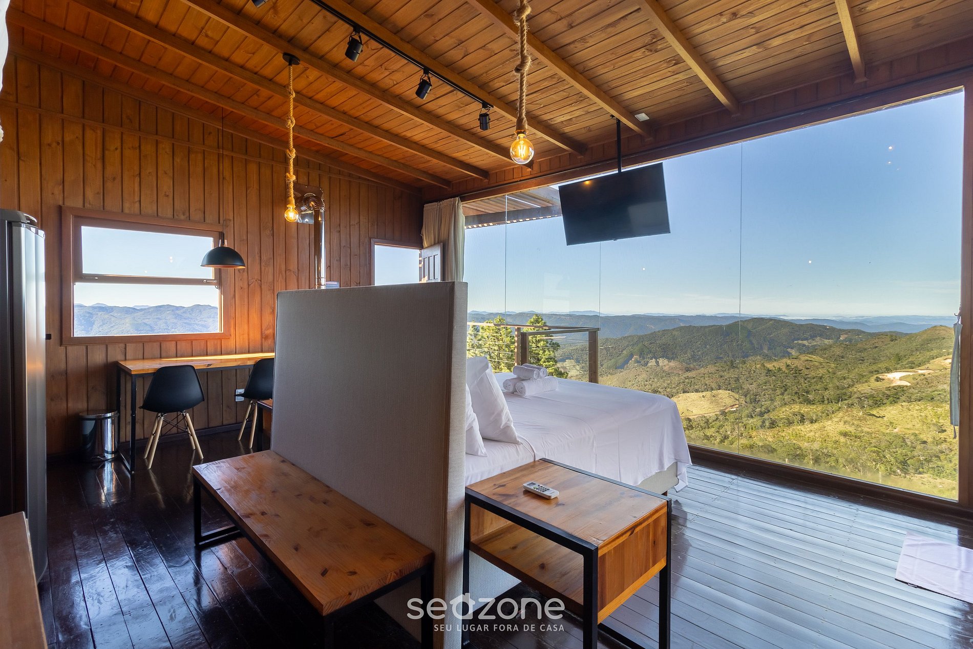 Combinando lo rústico con lo sofisticado, esta cabaña es el ambiente ideal para un alojamiento de lujo en medio de la naturaleza.. Además de ser acogedor, ofrece una impresionante vista a las montañas, perfecto para disfrutar de días románticos en pareja.