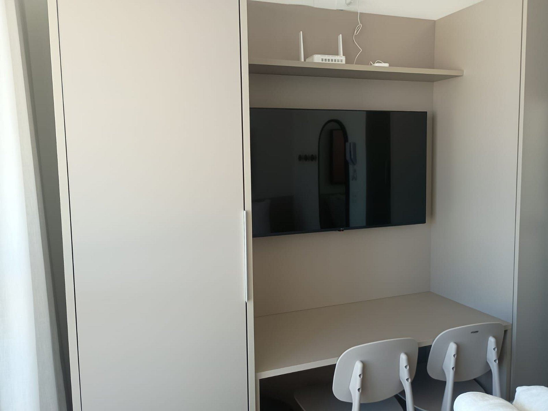 - Cama doble, armario, Smart TV y aire acondicionado;