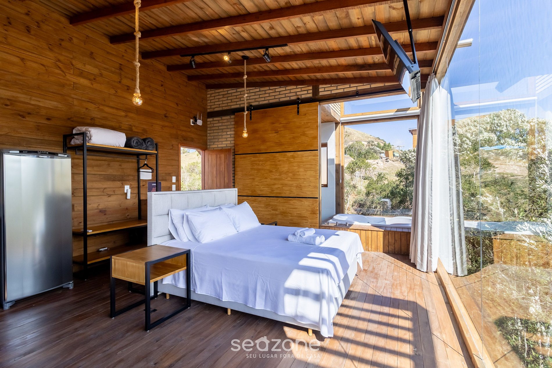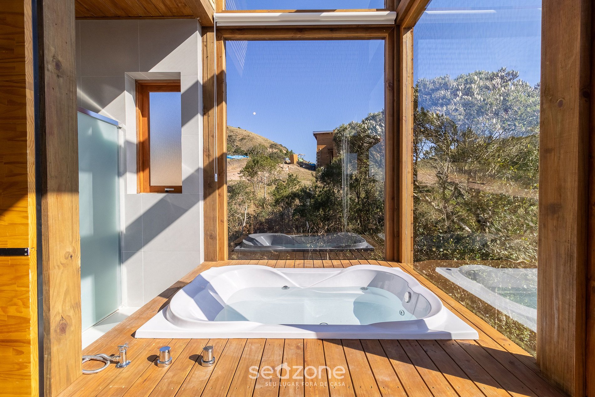 - Jacuzzi privado con hidromasaje y techo de cristal y ventanas panorámicas;