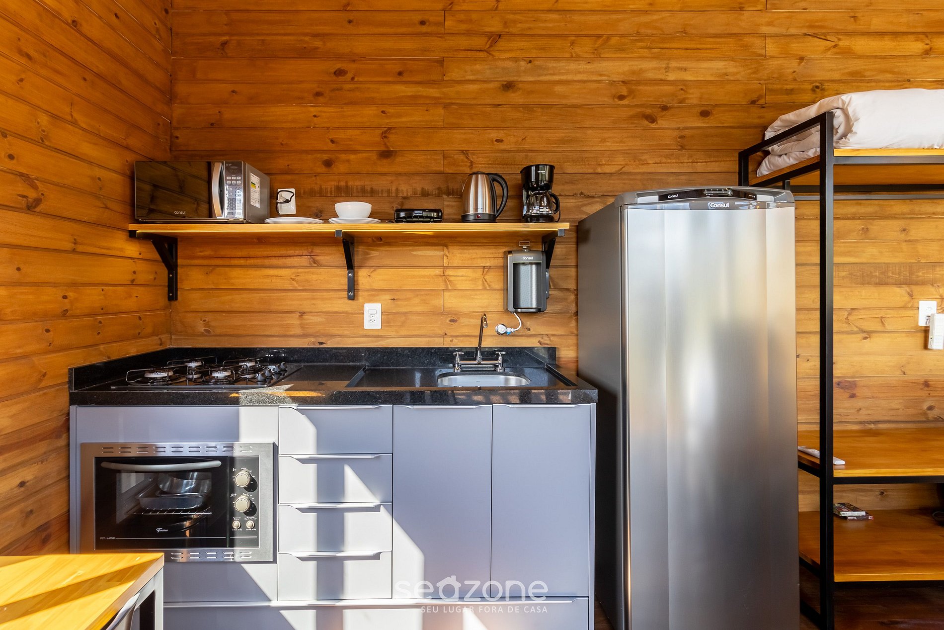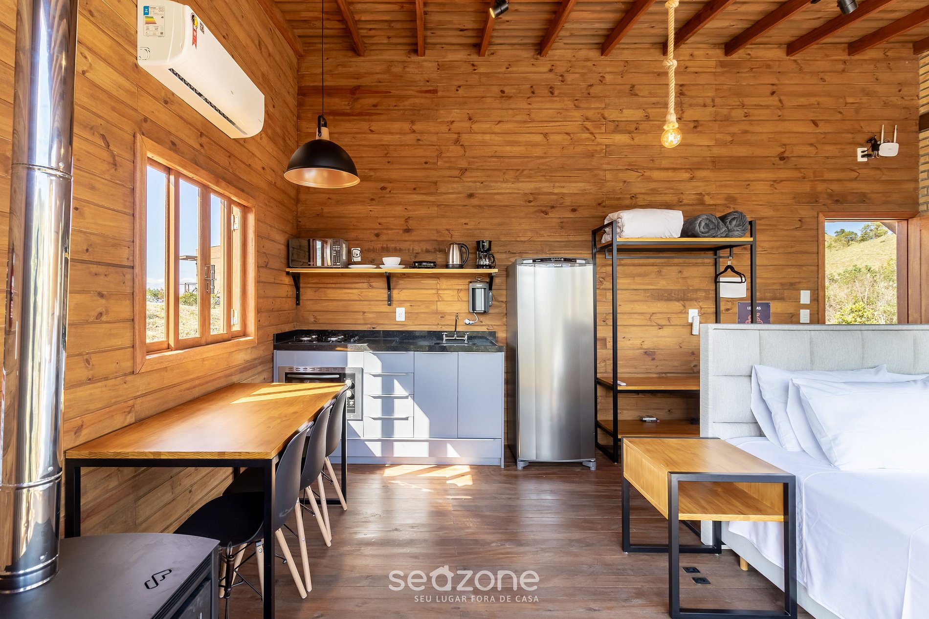 As cidades do entorno não tem nenhuma estrutura, então melhor ir preparado para ficar pelo local mesmo e não sair. A cozinha tem os itens essenciais para cozinhar, o que foi muito bom. E o local tem menu com alguns itens básicos.