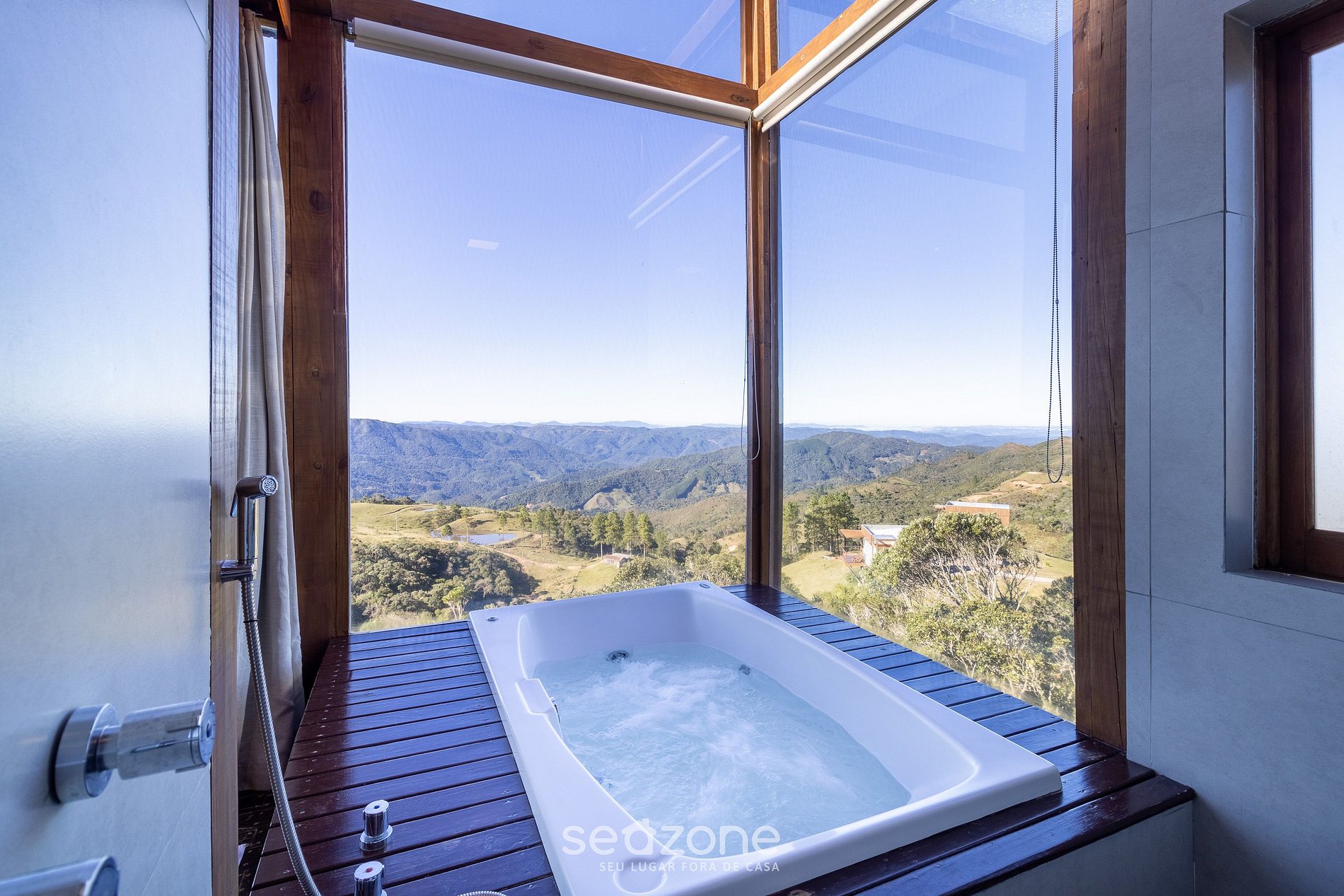 - Jacuzzi particular con hidromassagem y teto de vidrio y janelas panorâmicas;