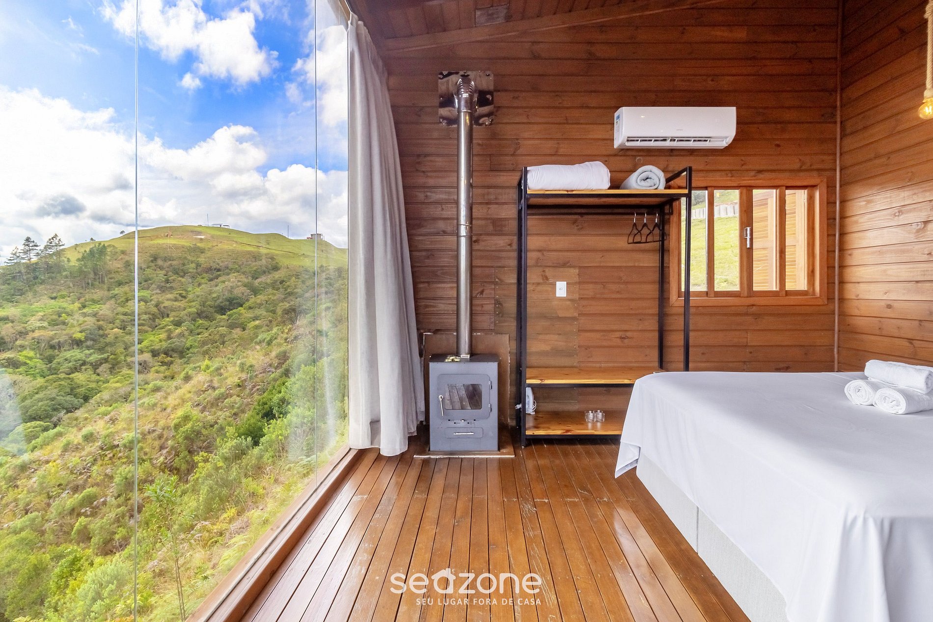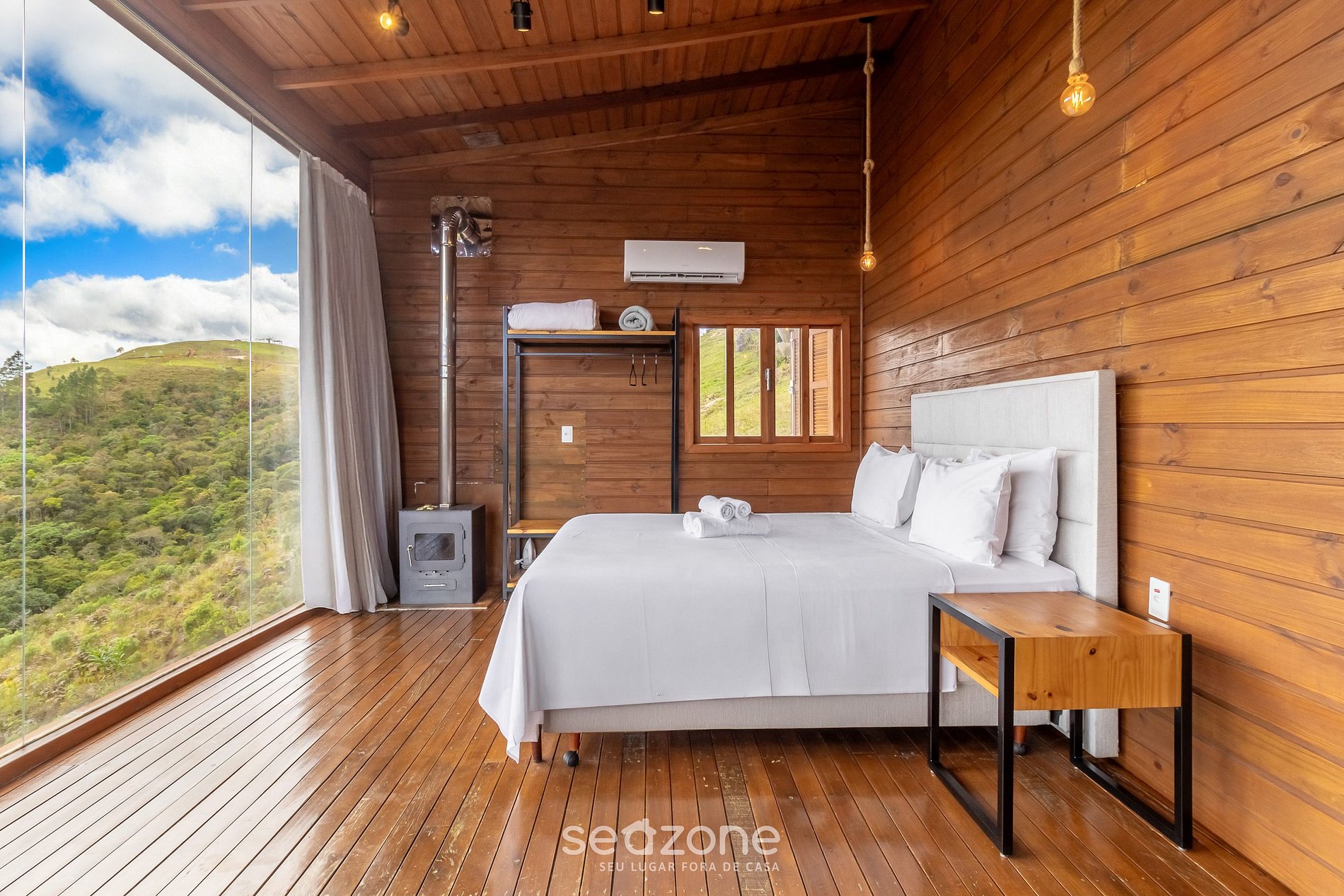 Combinando lo rústico con lo sofisticado, esta cabaña es el ambiente ideal para una estadía de lujo en medio de la naturaleza. Además de ser acogedor, ofrece una impresionante vista a las montañas, perfecto para disfrutar de días románticos en pareja.