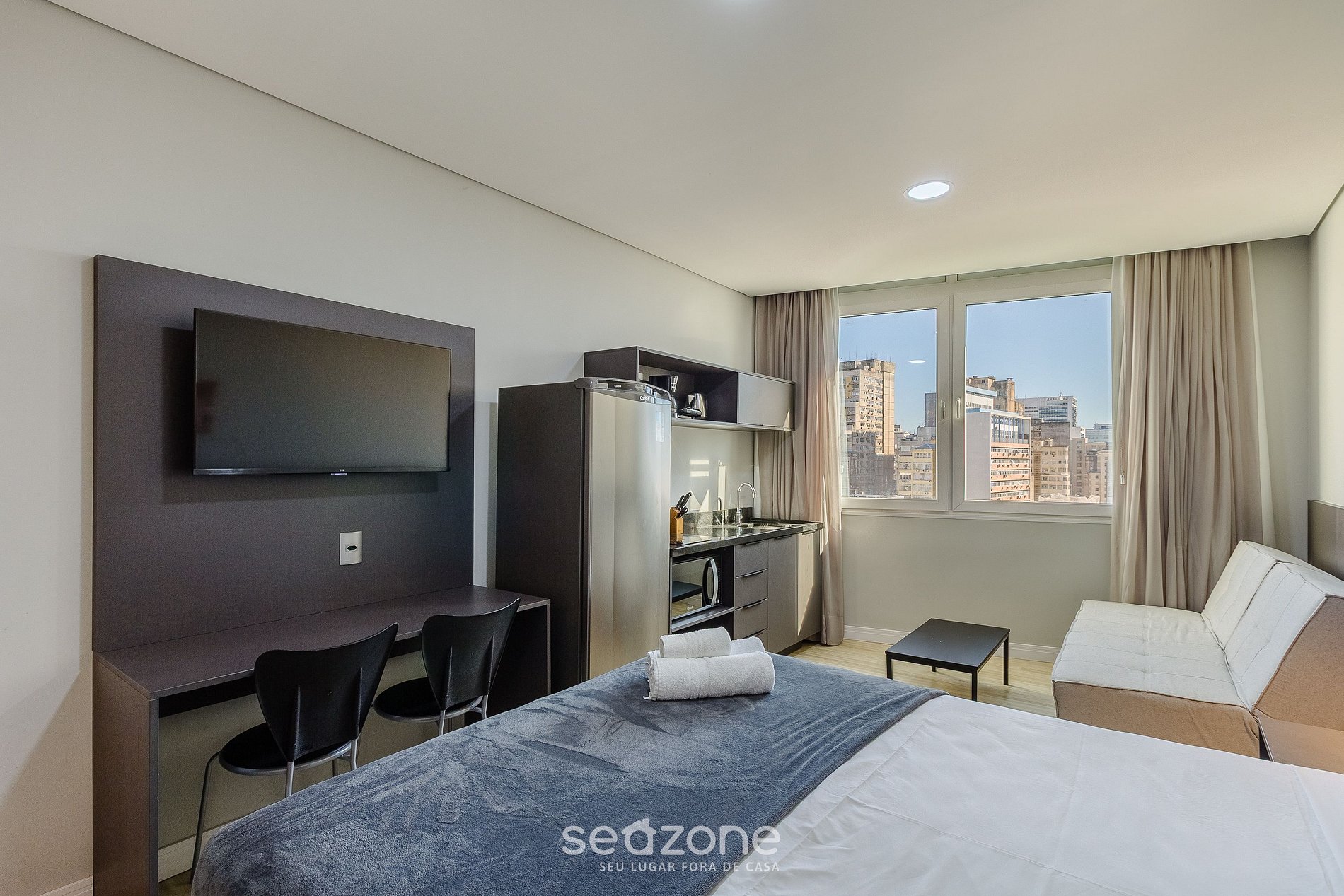 - Ropa de cama y baño de calidad hotelera (ropa de cama y toallas extra son cobrados por Seazone);