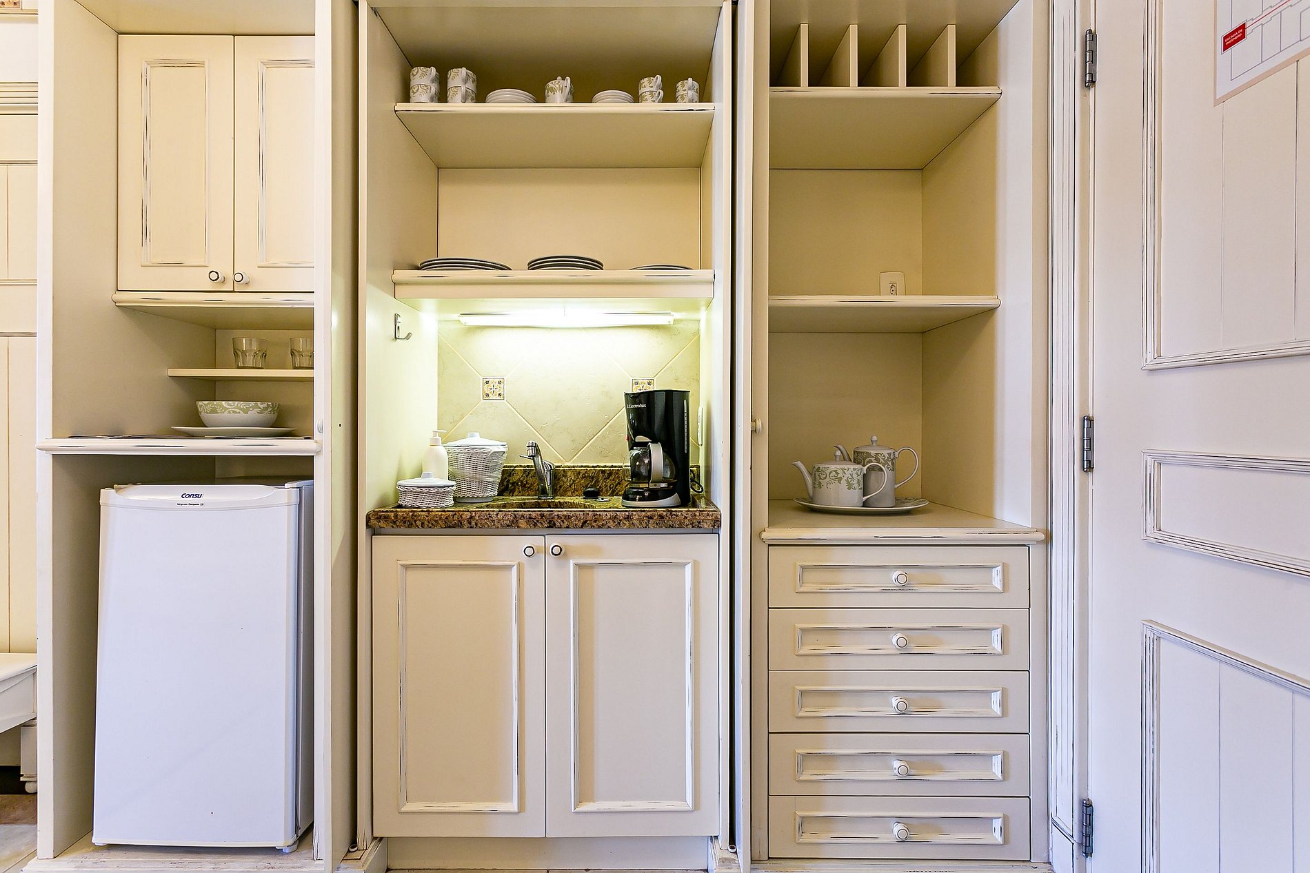 - Mini cocina con microondas, nevera, menaje de hogar;