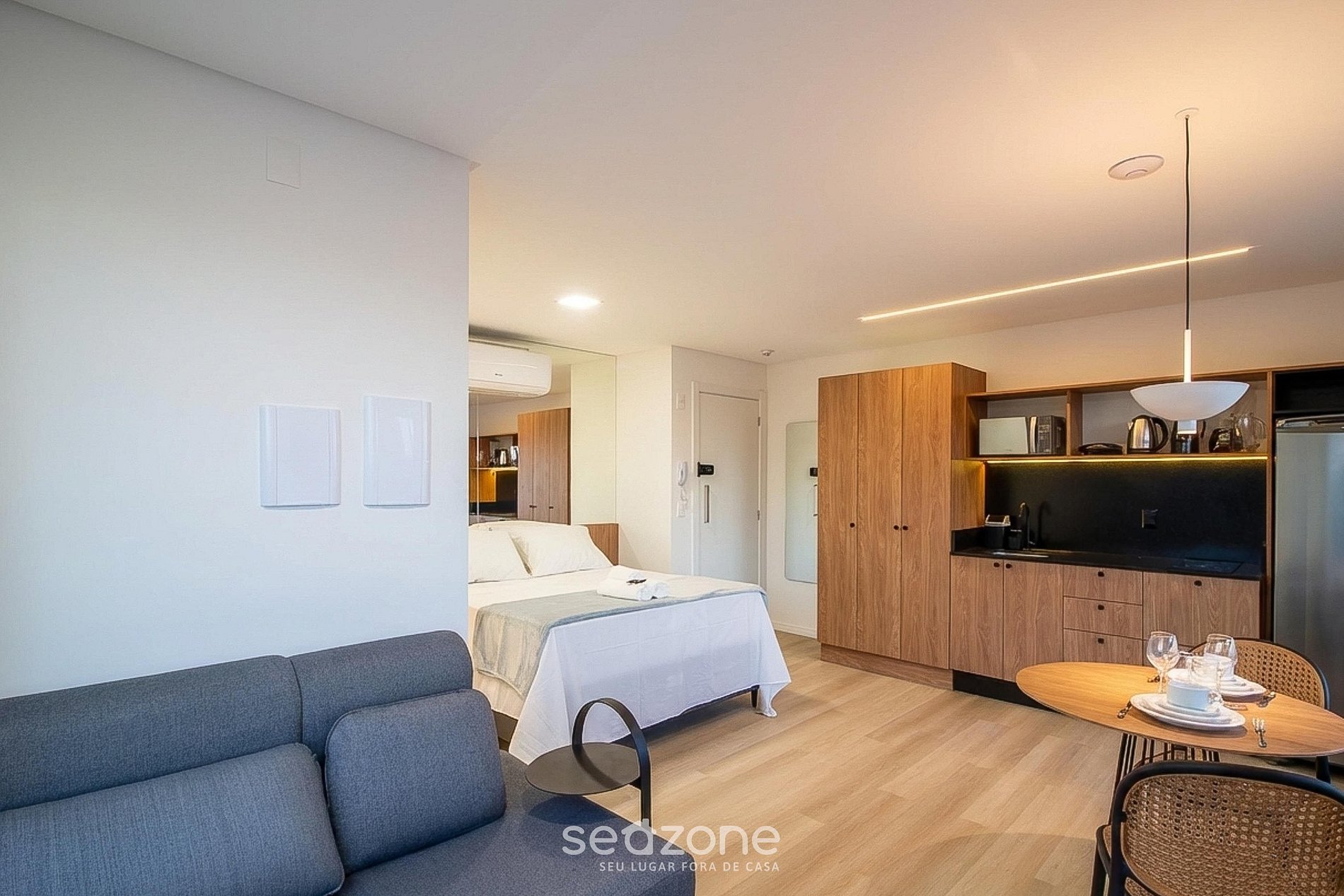 Podrá disfrutar de una piscina climatizada compartida, un gimnasio equipado y una sala de juegos para momentos de relax. Para facilitarle la vida diaria, el condominio ofrece comodidades exclusivas como un minimercado, lavandería e incluso un grifo de cerveza (con cargo adicional). Su ubicación es estratégica: a pocos pasos del Parque Ramiro Ruediger (400 m), lo que permite una rutina activa en contacto con la naturaleza. Con varios restaurantes y tiendas cerca, moverse a pie es sencillo y agradable. Es el refugio perfecto para quienes desean estar cerca de los principales eventos de la ciudad sin renunciar al bienestar.