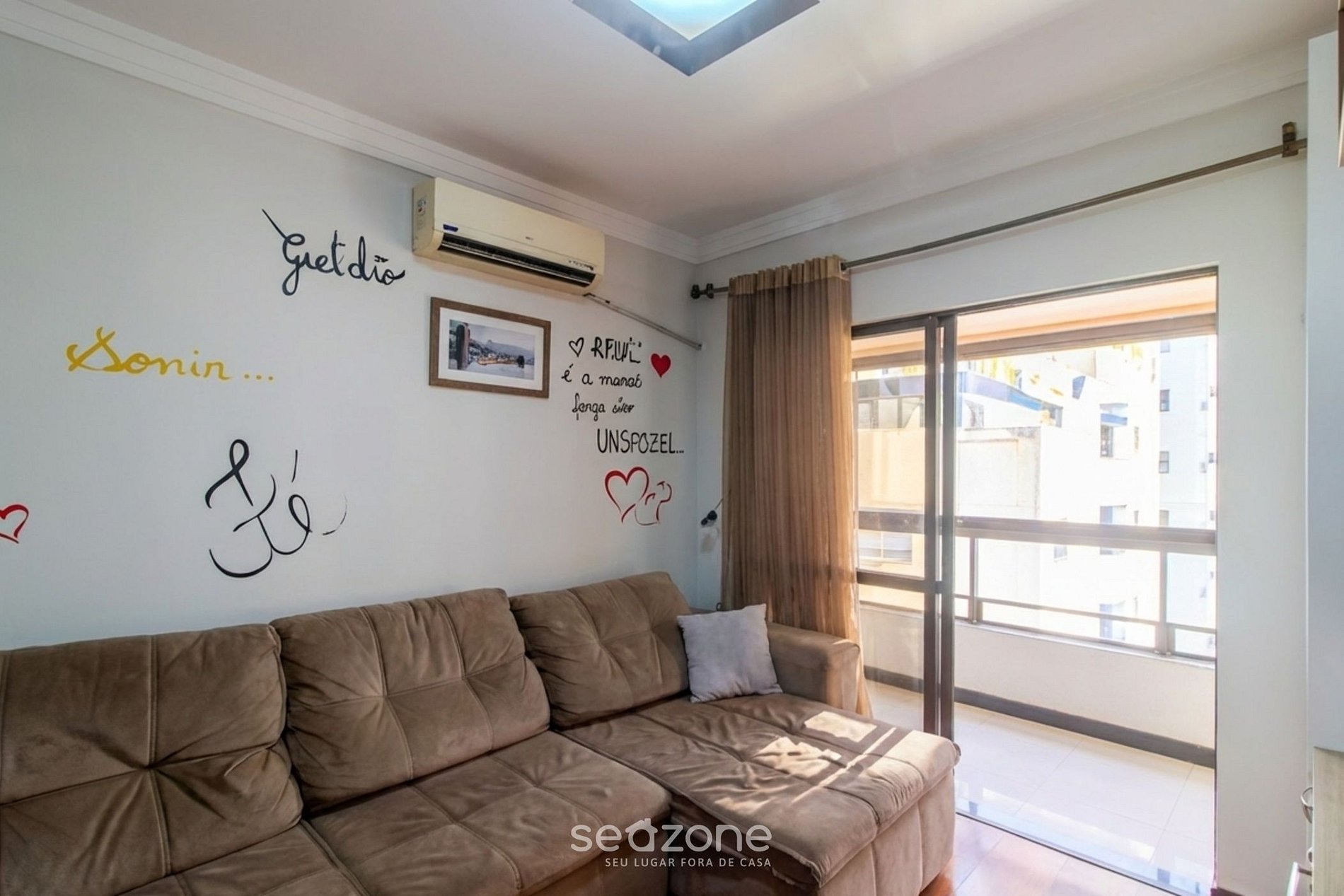 - Sala de estar con sofá, Smart TV y aire acondicionado split;