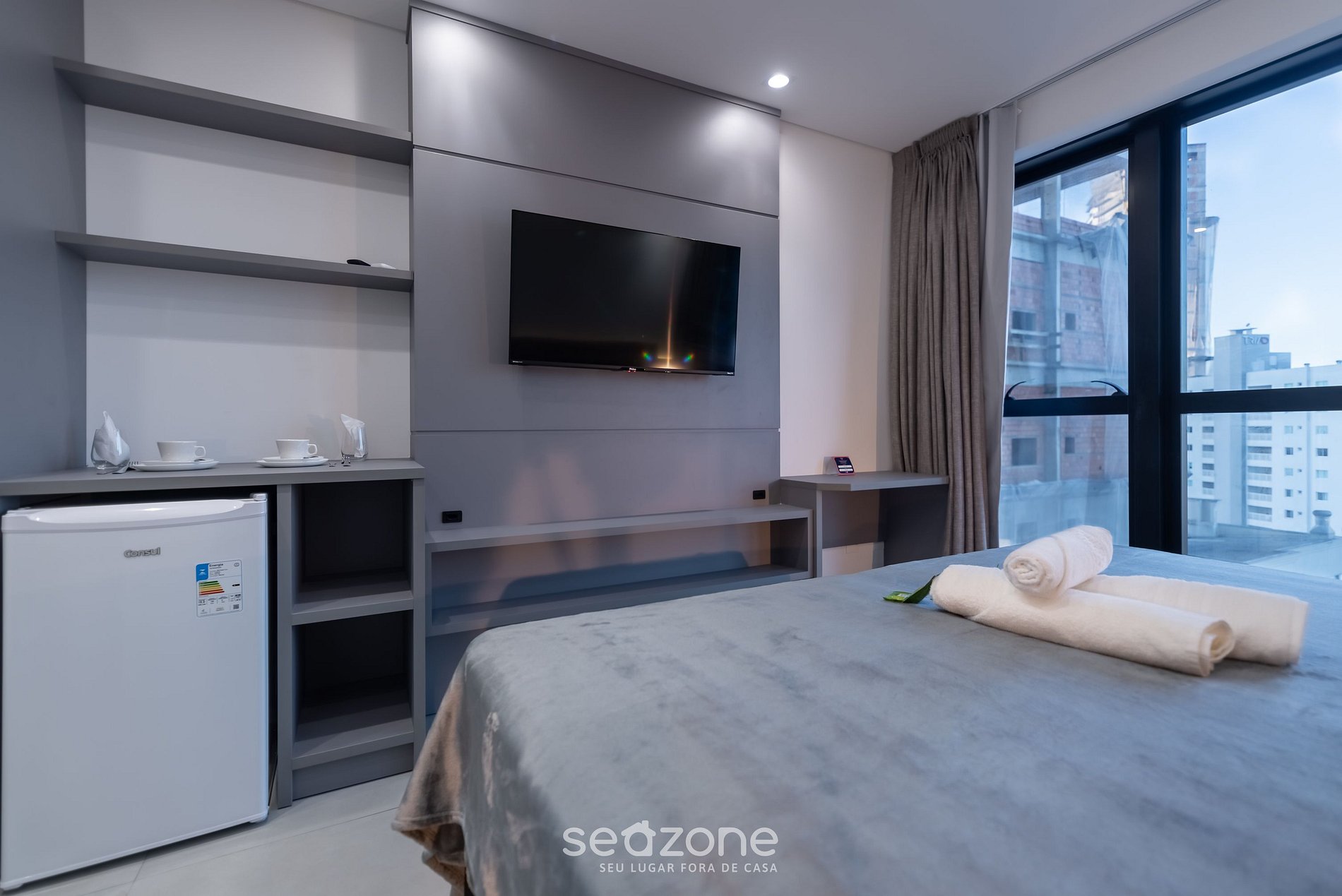 ¡Disfrute de nuestro moderno estudio en el centro de Itapema/SC! Totalmente climatizado y equipado con TV y Wi-Fi, el estudio se encuentra en el edificio Manhattan Flats, que ofrece piscina en la azotea, gimnasio con vista, sala de juegos, boliche, sauna y lavandería. Para más entretenimiento, reserve las parrillas, ambas con tarifa. A solo 280 metros de la Playa Central y cerca de excelentes restaurantes.