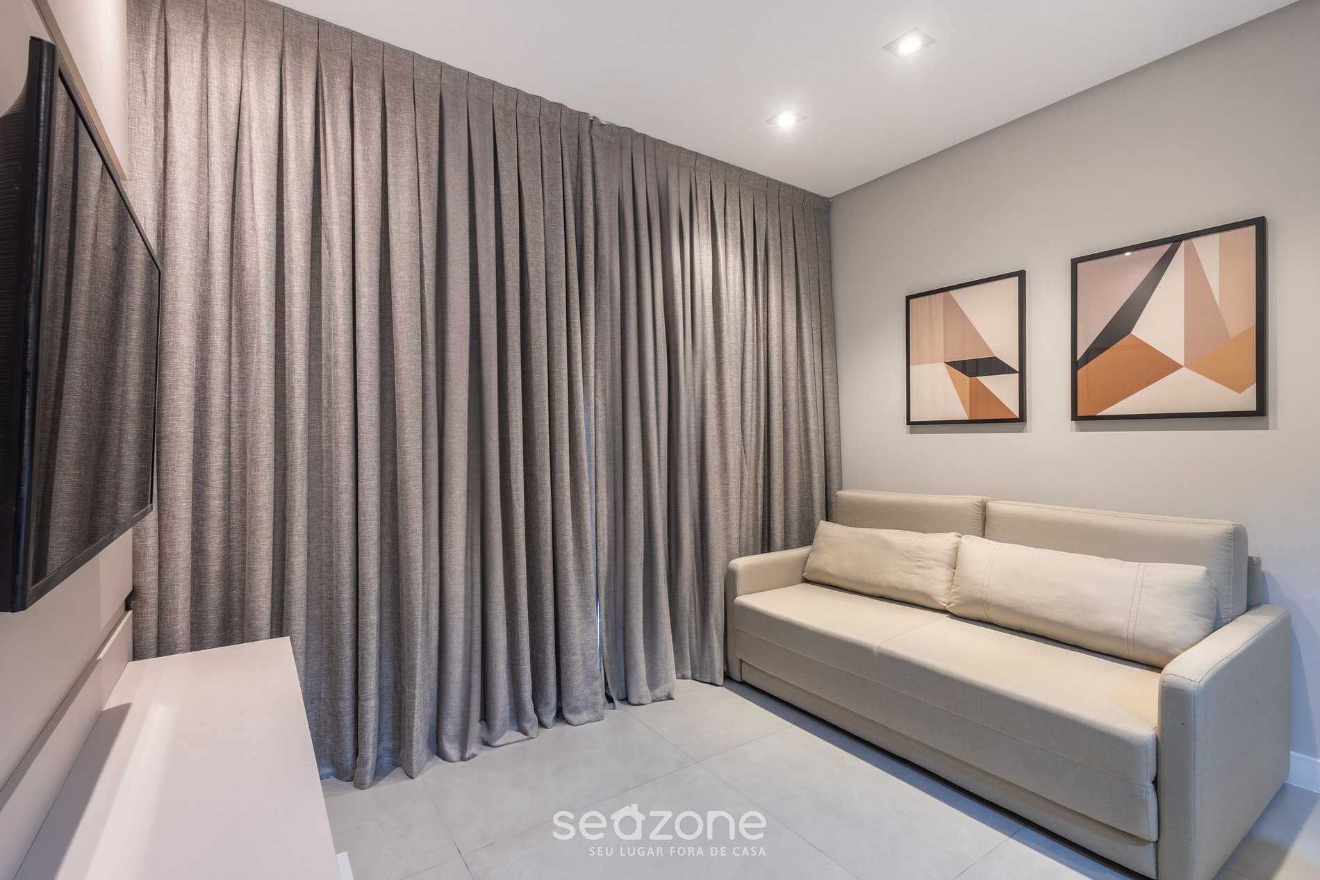 - Sala de estar con sofá-cama doble, cortinas blackout, Smart TV de pantalla plana y aire acondicionado;
