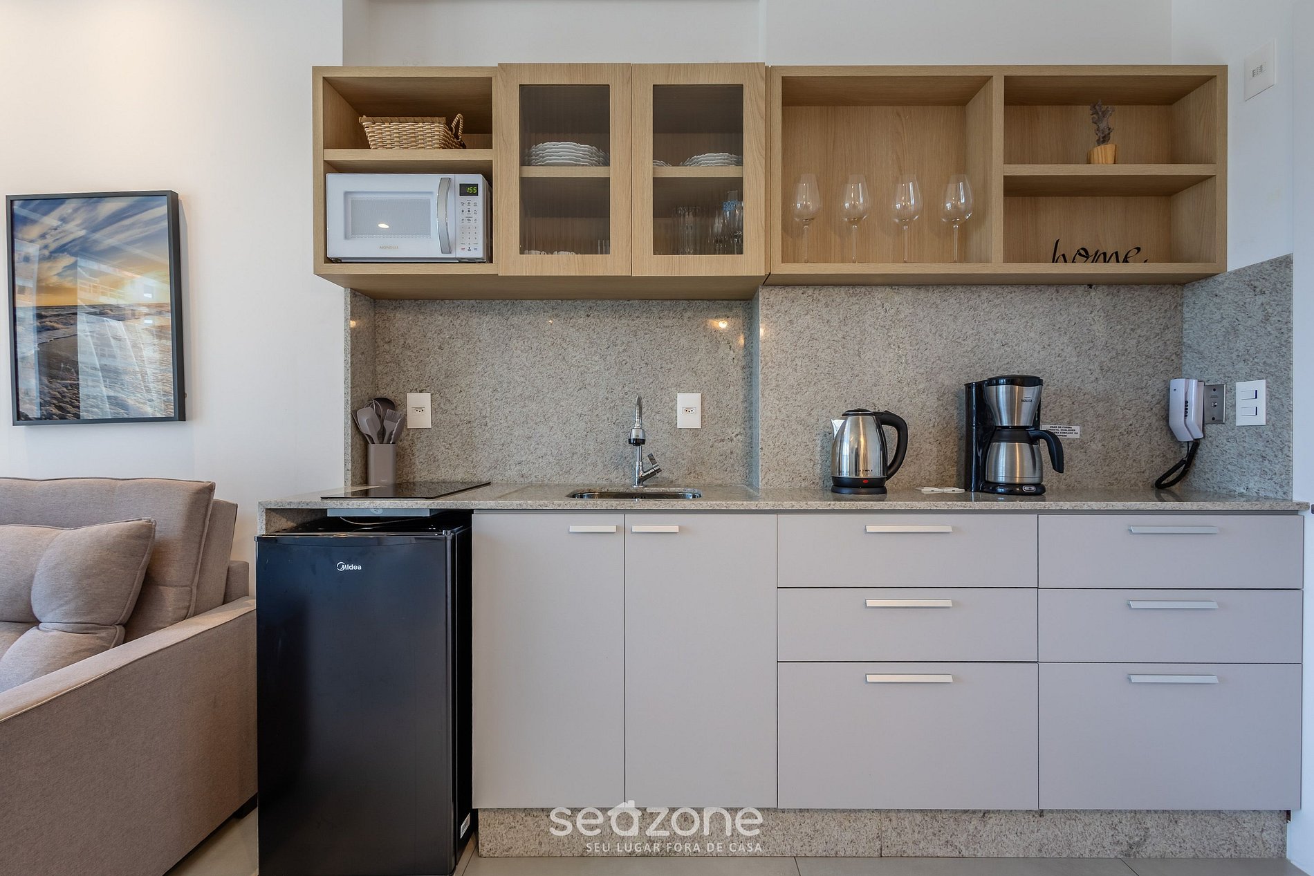 - Cocina completa con nevera, placa de inducción, microondas, sándwich, cafetera eléctrica, tetera eléctrica, copas de vino, ollas, vajillas y utensilios;