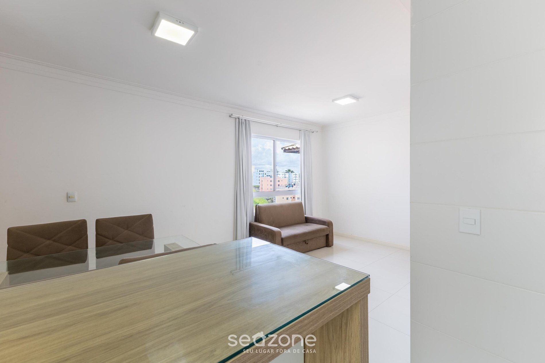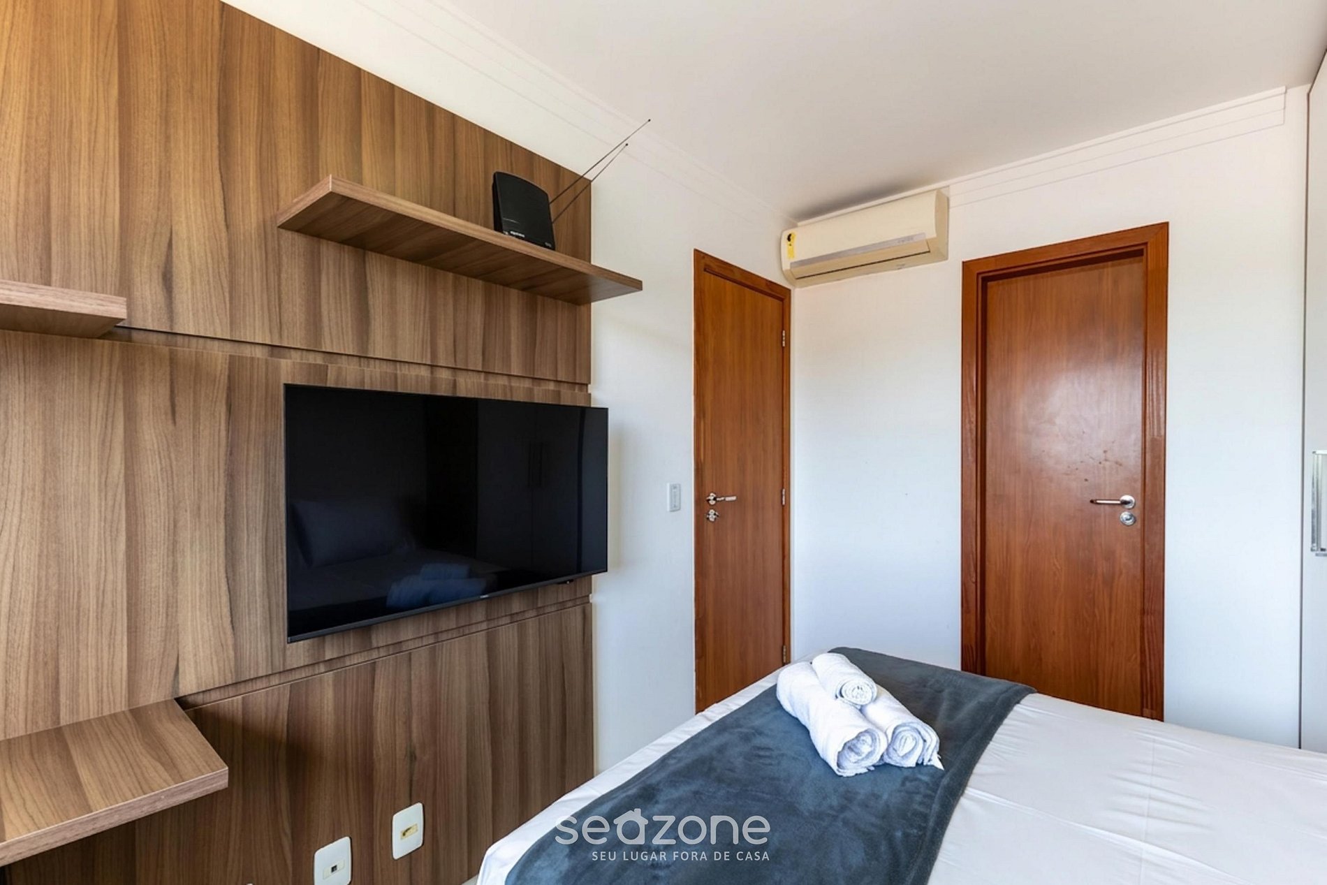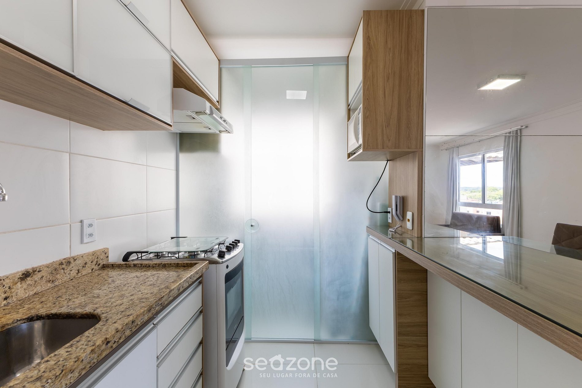 Sala de estar con TV, cocina completa y 2 habitaciones climatizadas, incluyendo 1 suite, garantizan confort y conveniencia. Disfruta de la piscina compartida, garaje y ascensor que el condominio ofrece para tu comodidad. Restaurantes y opciones de ocio están muy cerca.