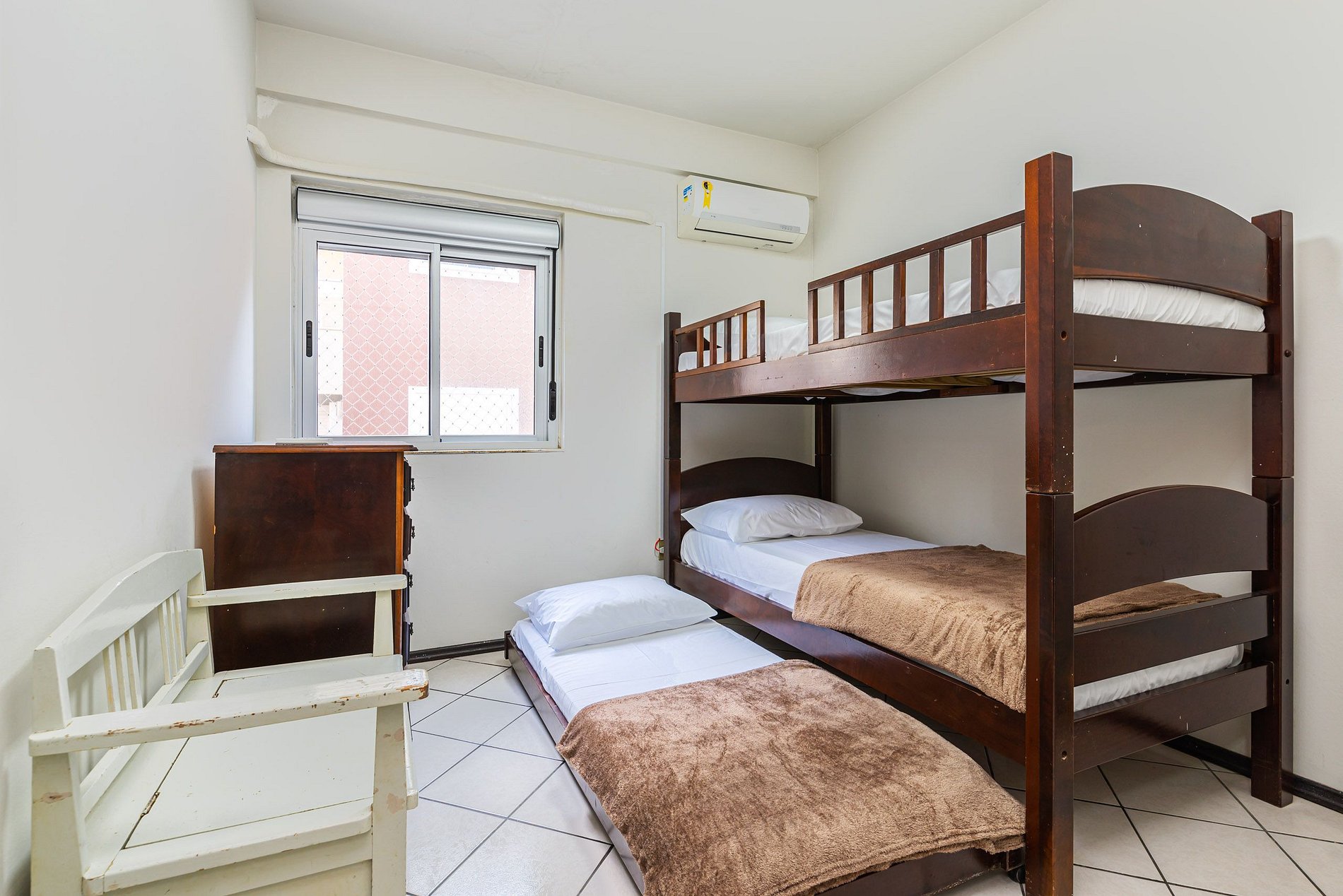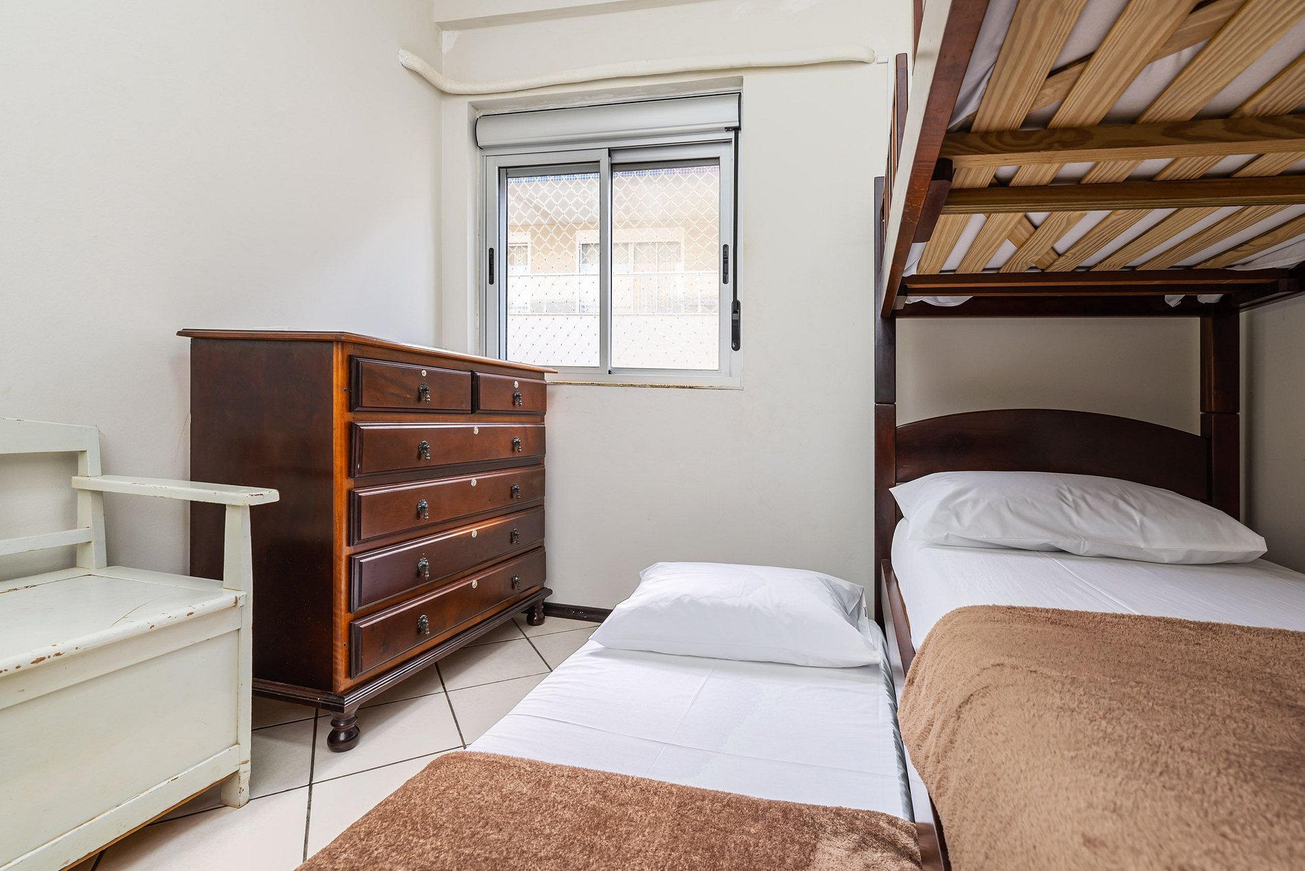 - 1 dormitorio con dos camas individuales, cómoda para guardar ropa y aire acondicionado;