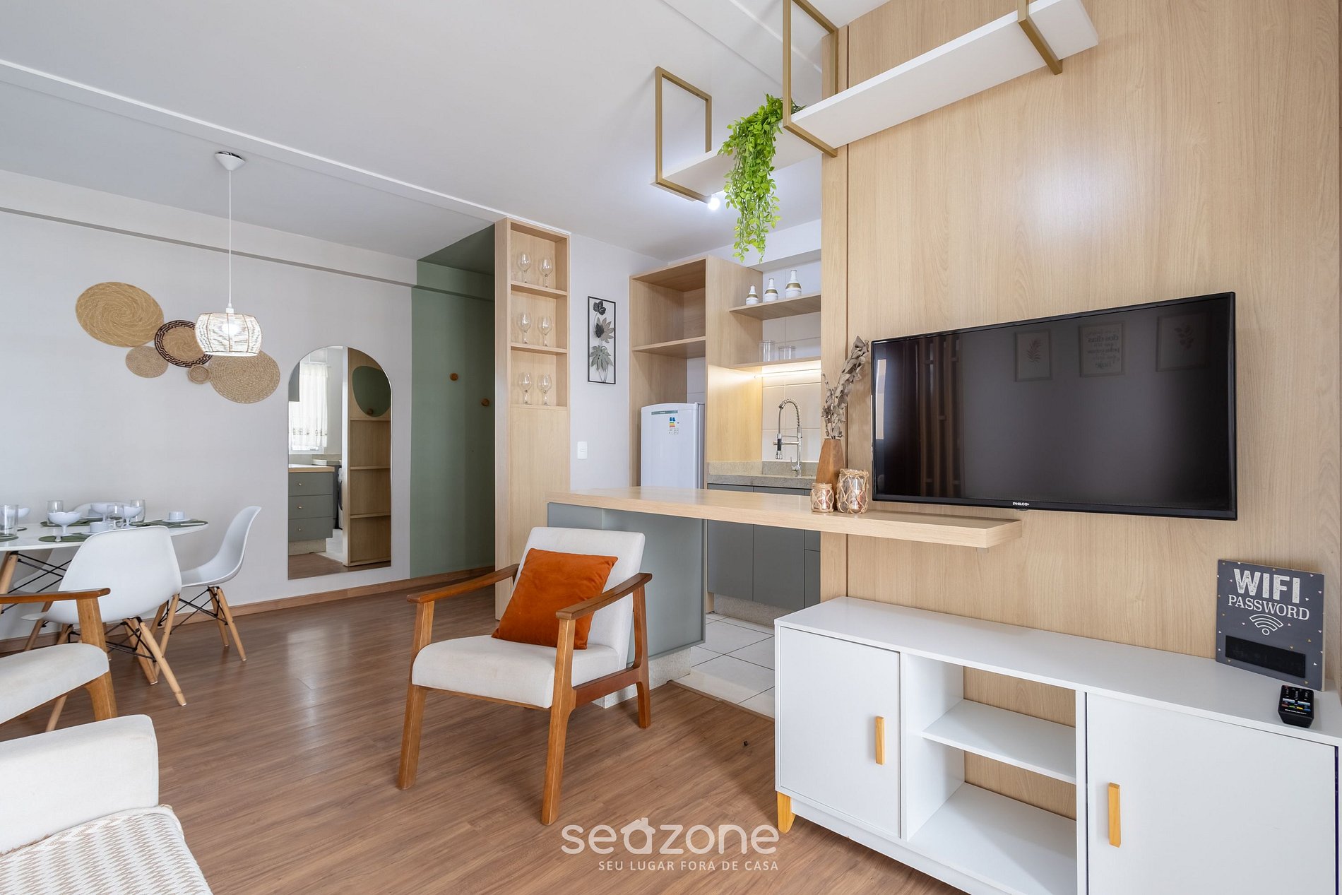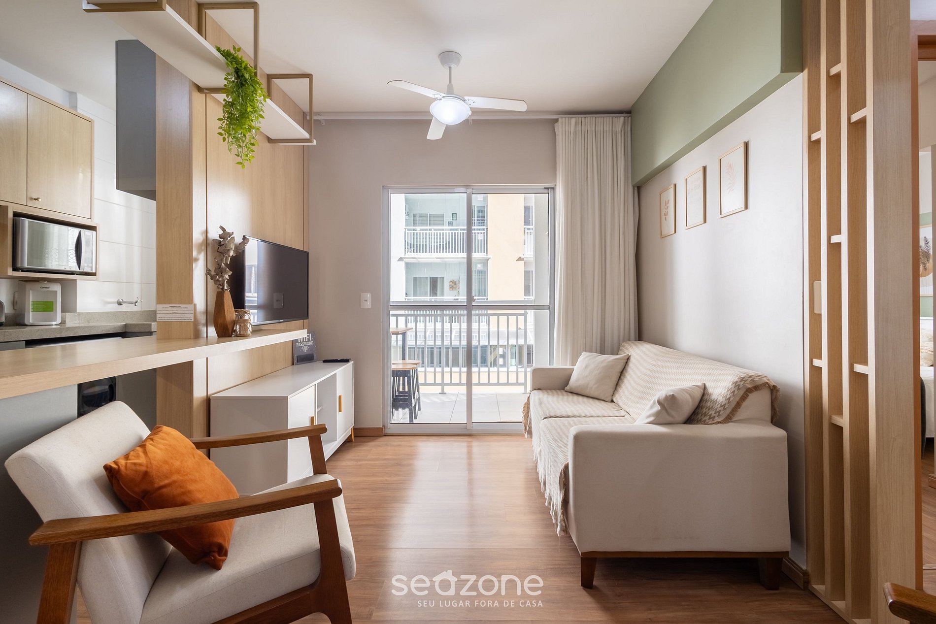 - Sala de estar con ventilador de techo y Smart TV;