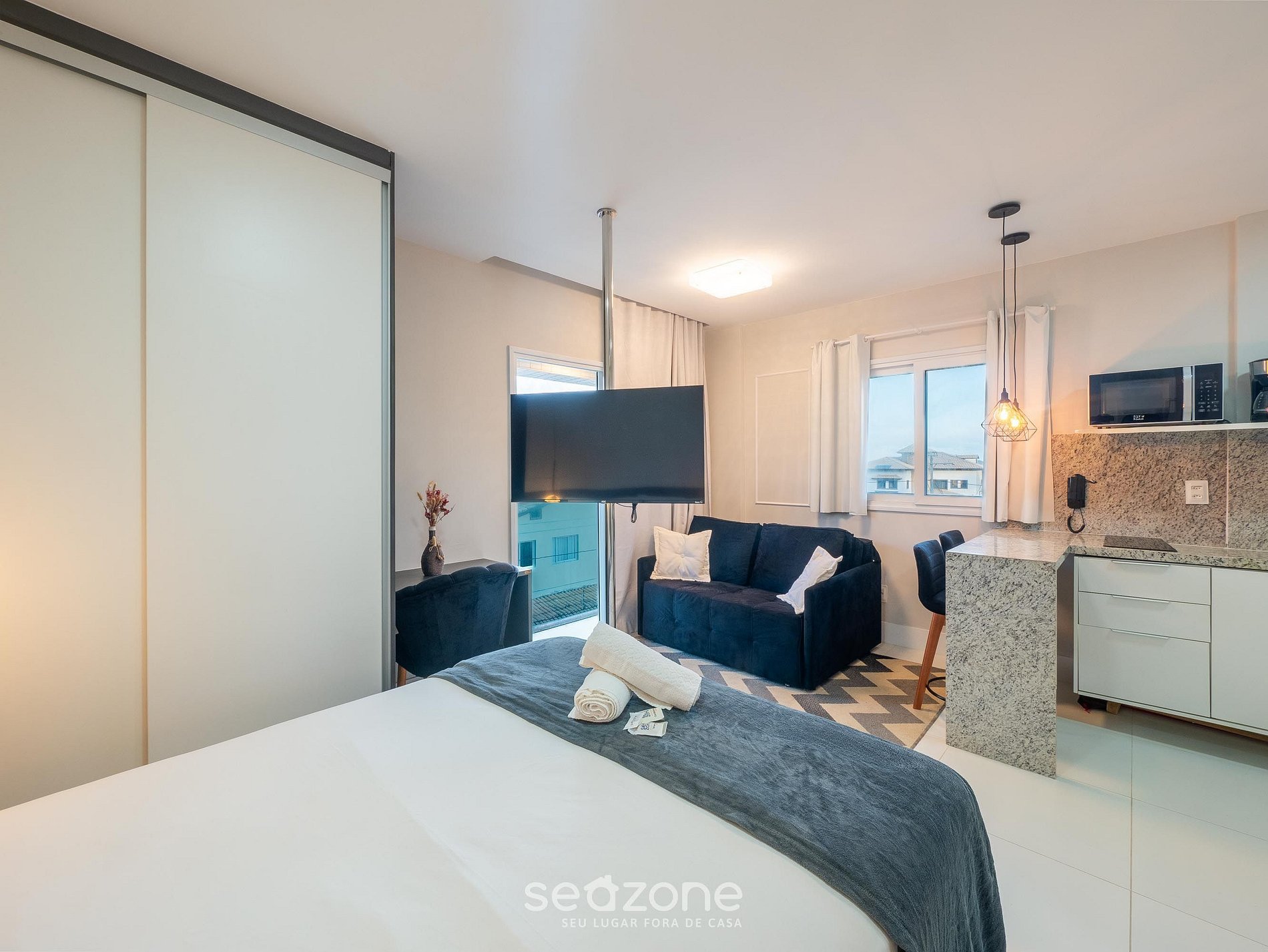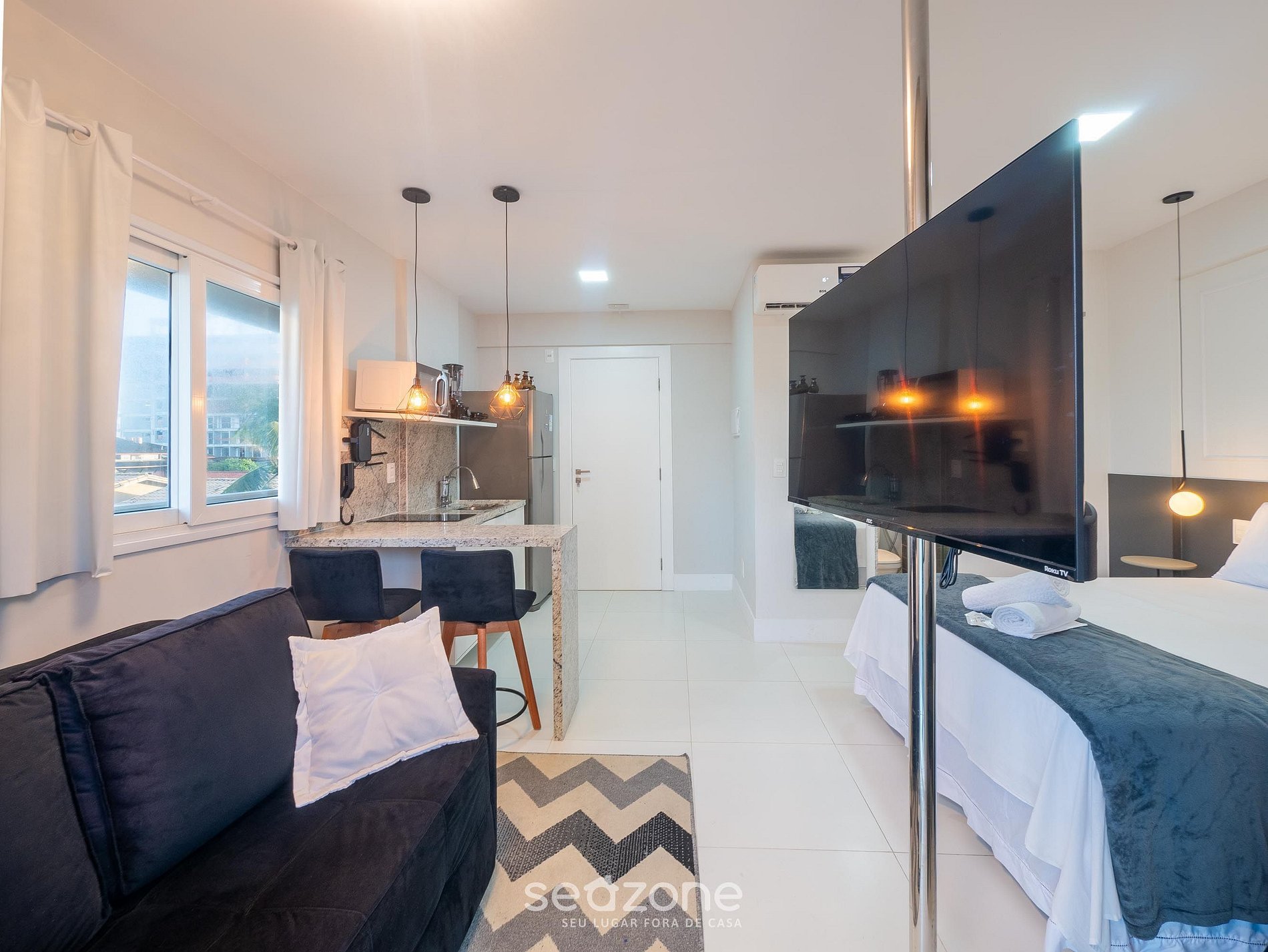 Déjate encantar por este estudio completo, donde el diseño moderno se combina con la practicidad del día a día. A solo 300 m de la Playa de Itapuã, la unidad cuenta con cama doble, sofá cama, Smart TV, aire acondicionado, cocina equipada y balcón con vista al mar. Disfruta también de las áreas compartidas, como piscina, gimnasio y coworking, que harán tu estancia aún más especial.