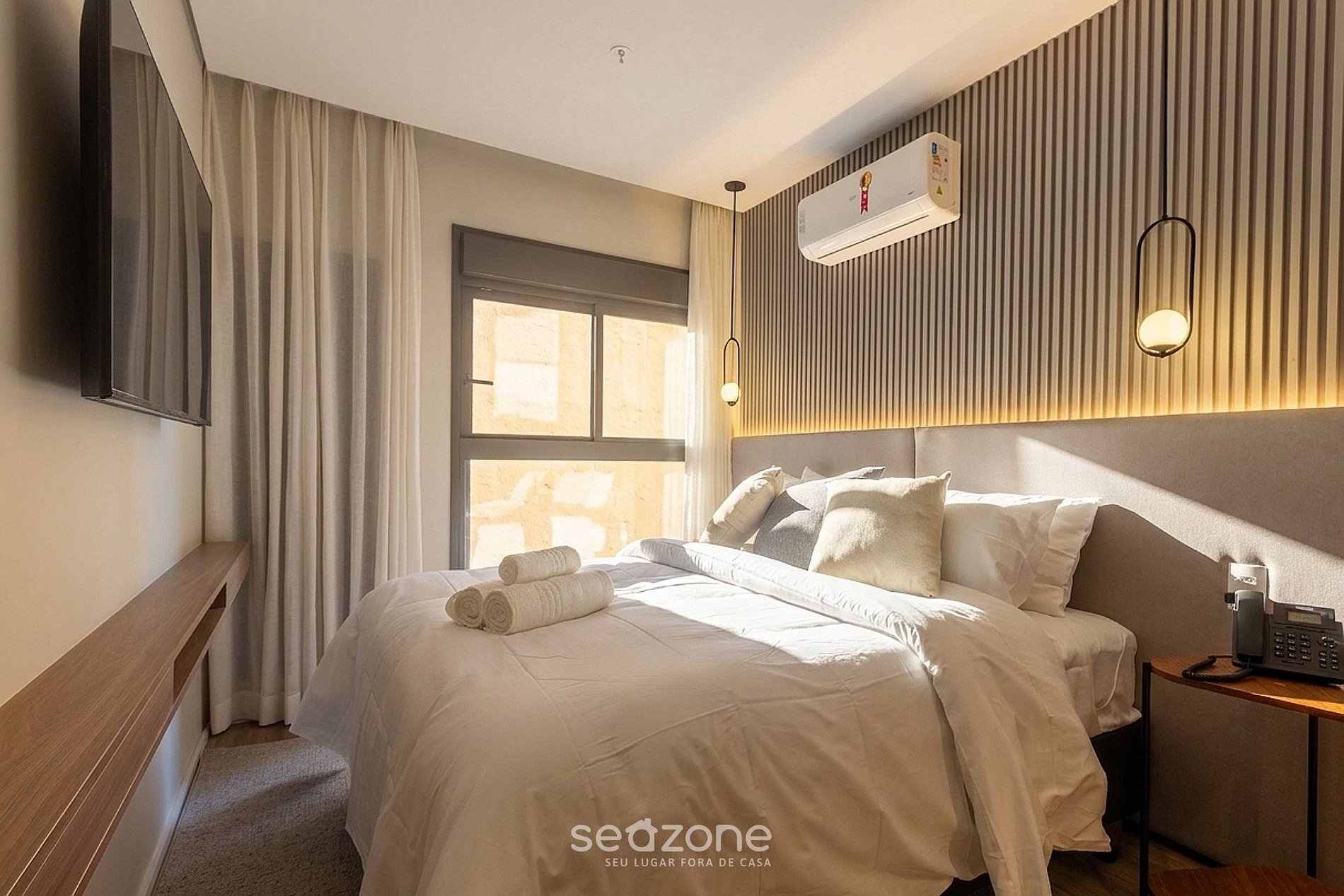 - Ropa de cama y toallas de calidad hotelera (la ropa de cama y las toallas adicionales tienen un costo extra por parte de Seazone);