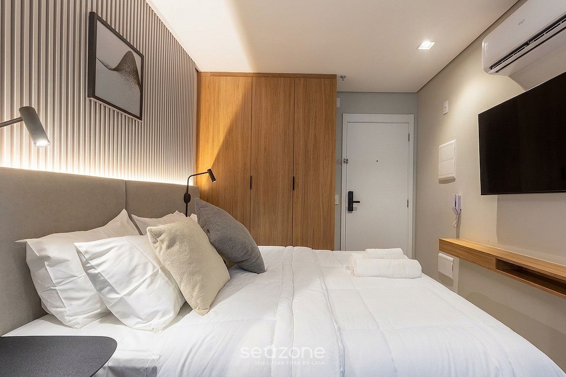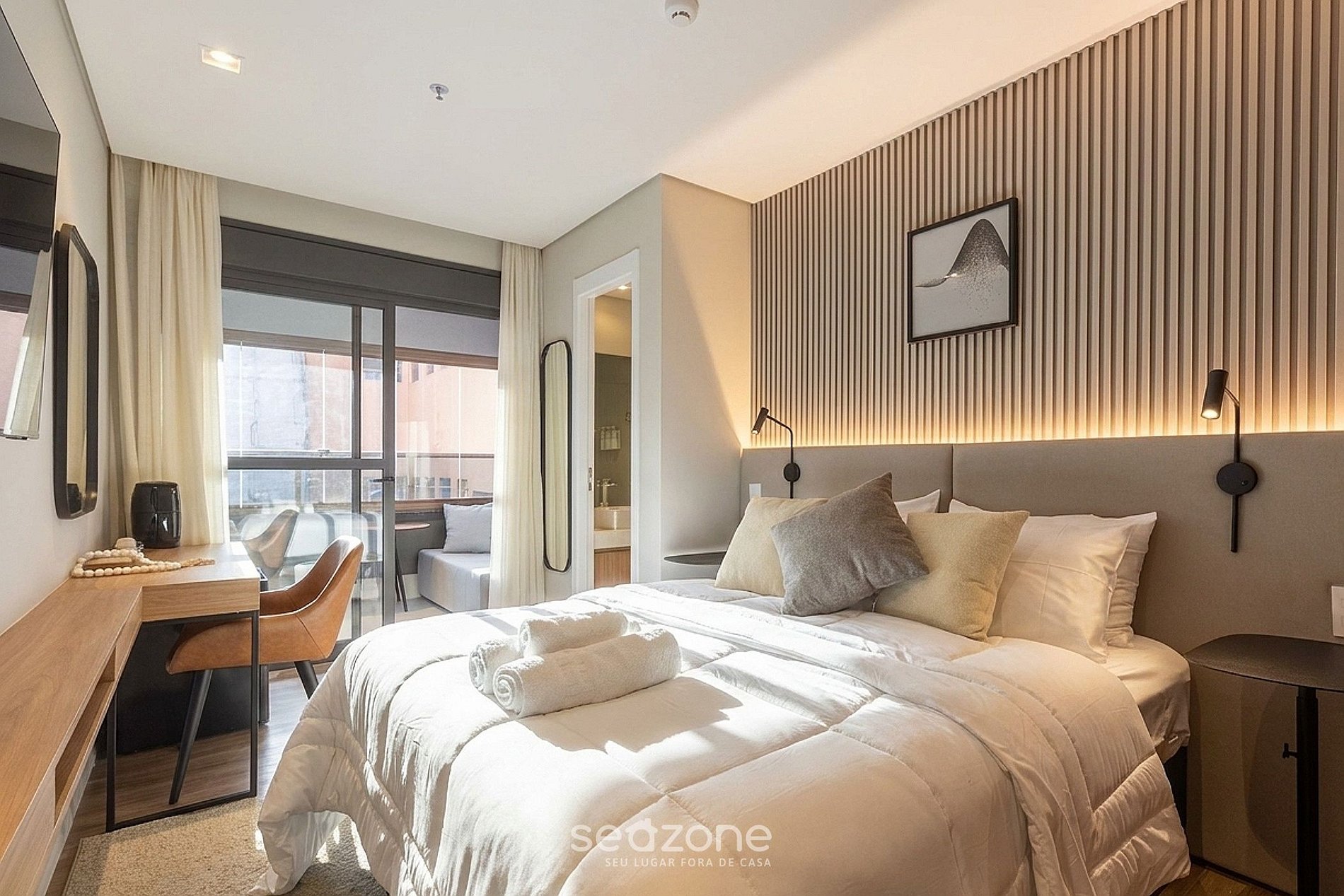 Situado en Bela Vista, São Paulo, este estudio ofrece practicidad y confort. Cerca de puntos icónicos como la Avenida Paulista (1,5 km), el MASP (1,8 km) y el Shopping Cidade São Paulo (1,6 km). La región cuenta con infraestructura completa, a unos 800m del Hospital Sírio-Libanês y rodeada de teatros y restaurantes tradicionales. El acceso al transporte público es sencillo gracias a las estaciones de metro y diversas líneas de autobús cercanas.