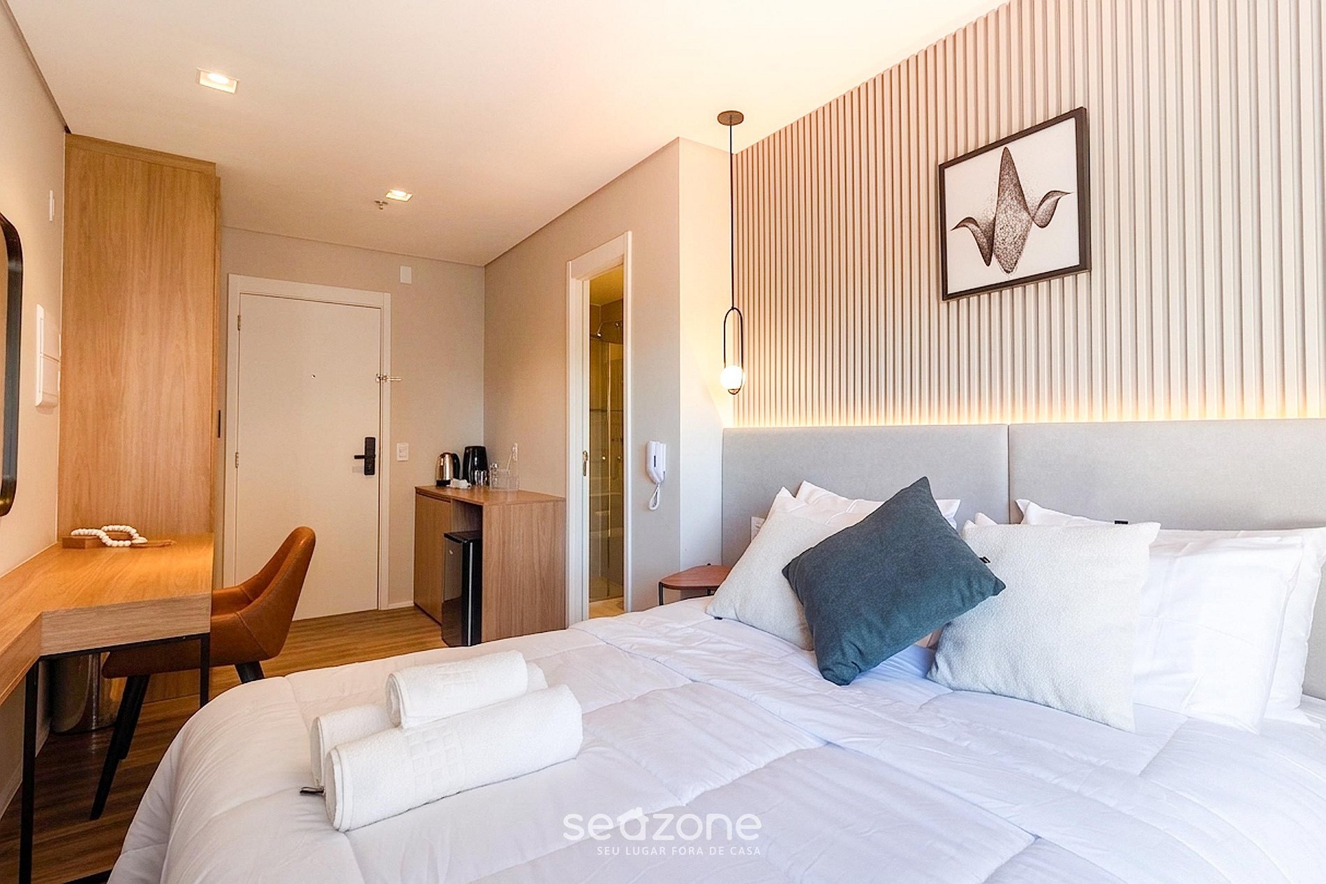 - Ropa de cama y baño de calidad hotelera (las prendas de cama y toallas extra tienen un costo adicional cobrado por Seazone);