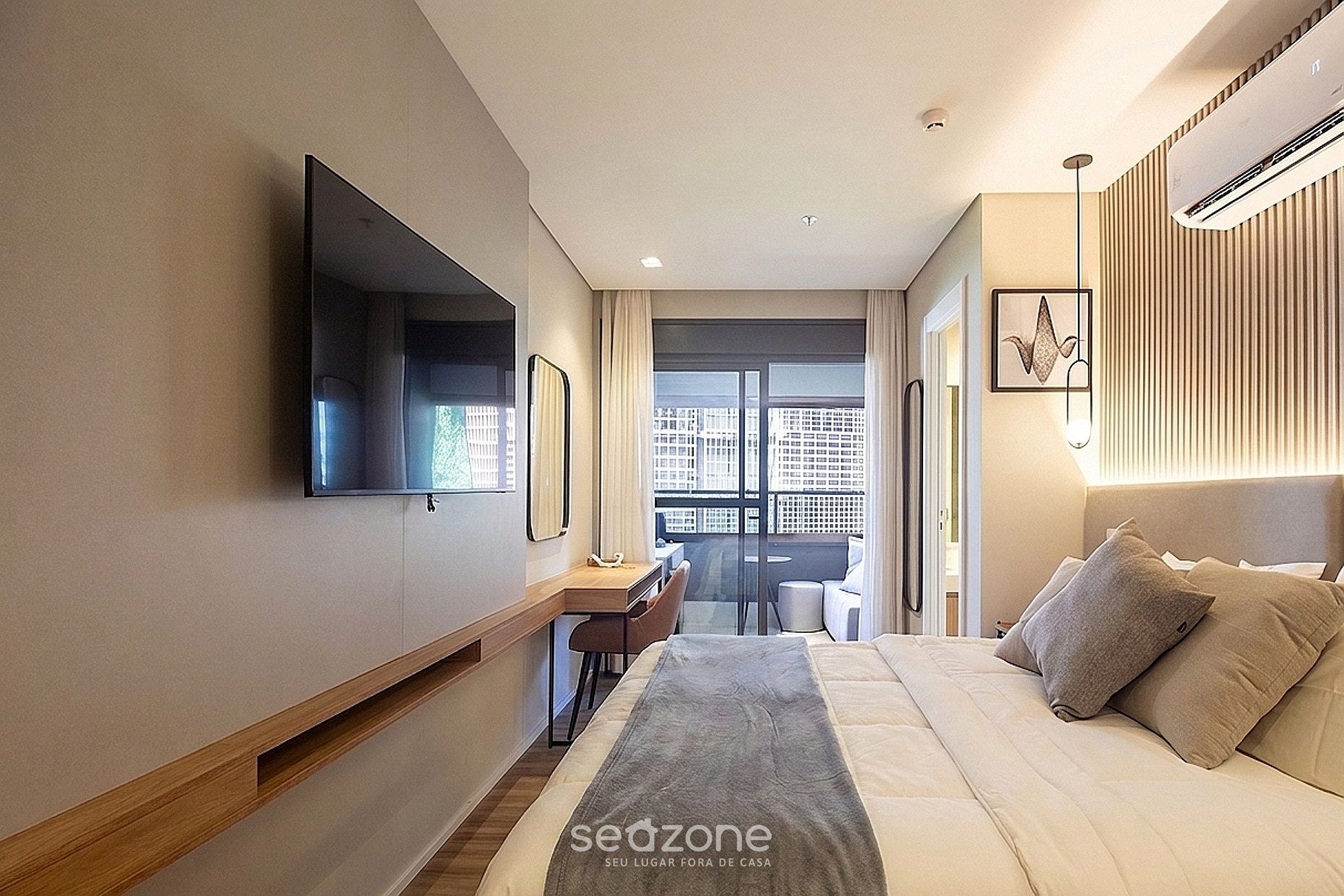 A solo 1 km del MASP, el lugar es ideal para quienes buscan cultura y negocios. Explora el Shopping Cidade São Paulo (1,2 km) o los teatros de la región. Con fácil acceso al metro Trianon-Masp (1,3 km) y cerca del Hospital Sírio-Libanês (800 m).